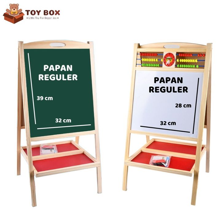 LARGE size Mainan Papan Tulis lipat Anak Blackboard dan Whiteboard 2 in 1 bolak balik / Wooden 2in1 Magnetic Board/Papan