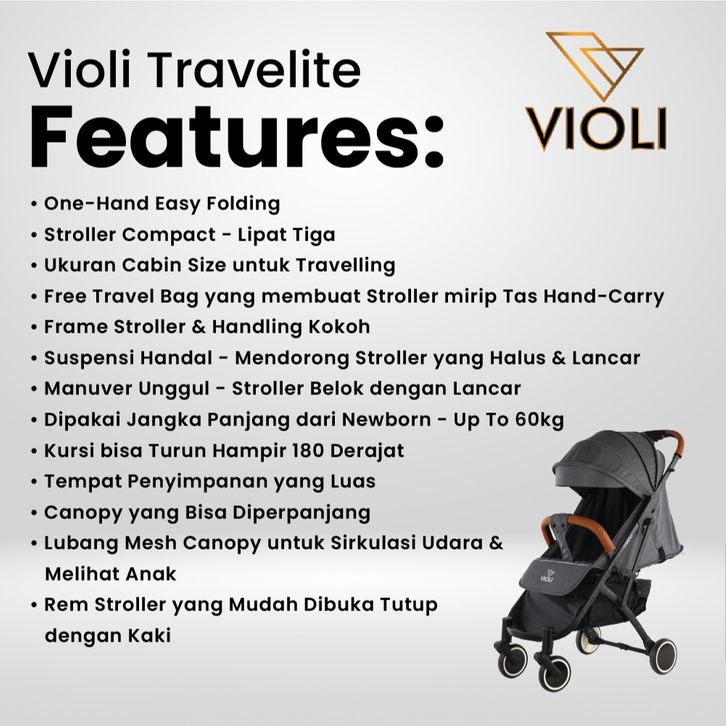 Violi Travelite - Stroller Cabin Bayi Anak Kereta Dorong Ringan Easy Fold Up To 60kg agokd