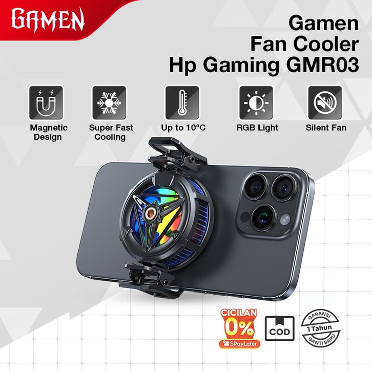 coller hp GAMEN Fan Cooler Hp Gaming Magnetic Clip RGB Light GMR03 Upgrade Up to 10°C Silent Fan Heatsink Kipas Hp deng