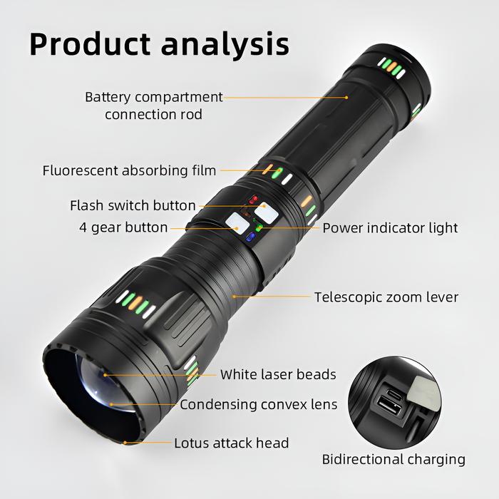 H2S Senter HS-G600 Super Terang Jumbo Type-C Zoom Waterproof Powerbank