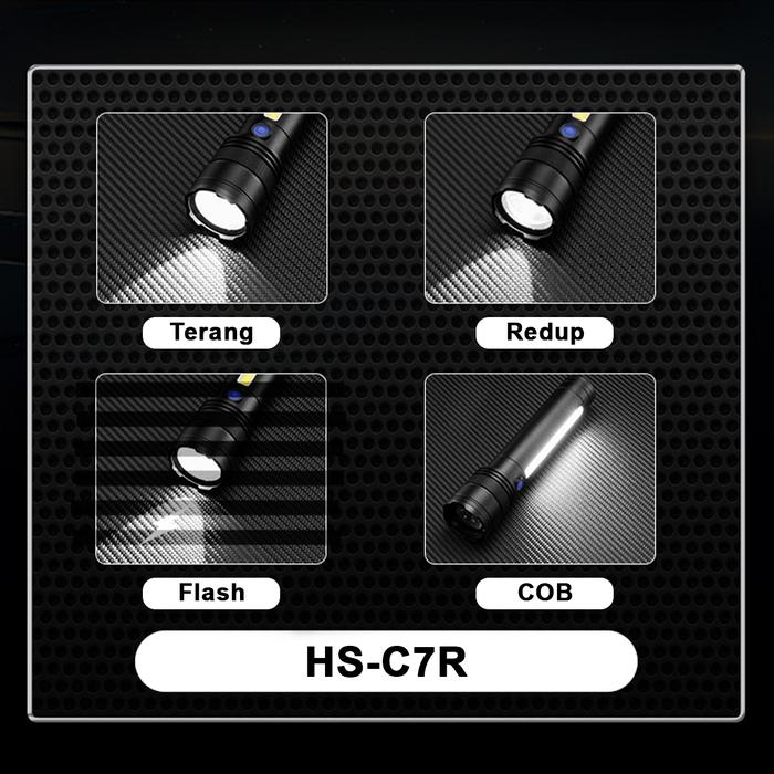 H2S Senter C7R LED Laser 60w Body Strip COB Alumunium 4 Mode Cahaya HS-C7R