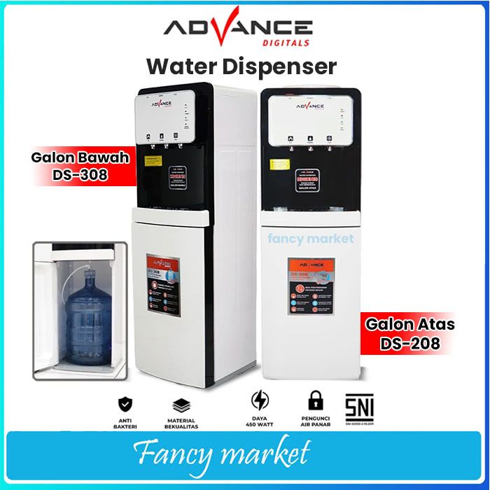 DISPENSER GALON BAWAH ADVANCE DS 308/DISPENSER GALON ATAS ADVANCE DS 208 - 3 Kran Panas Dingin Normal GARANSI RESMI 1 TH