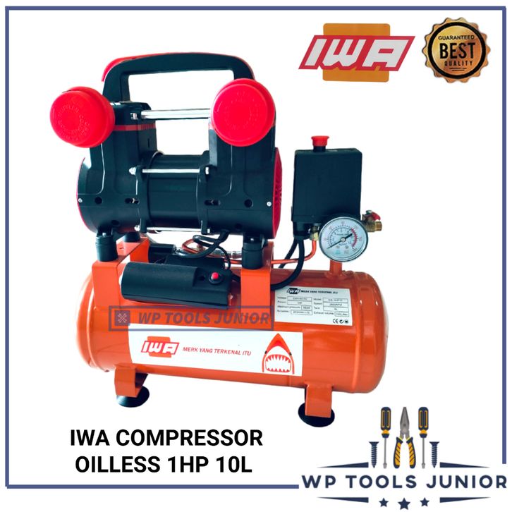 IWA 1HP Tank 25 Liter / 10 Liter Oiless Silent Mesin Kompresor Angin 8 Bar Dual Input Listrik Portable 1.0HP Tanpa Oli