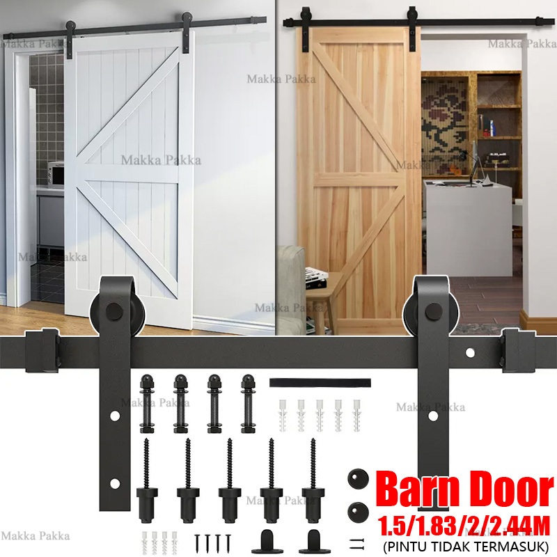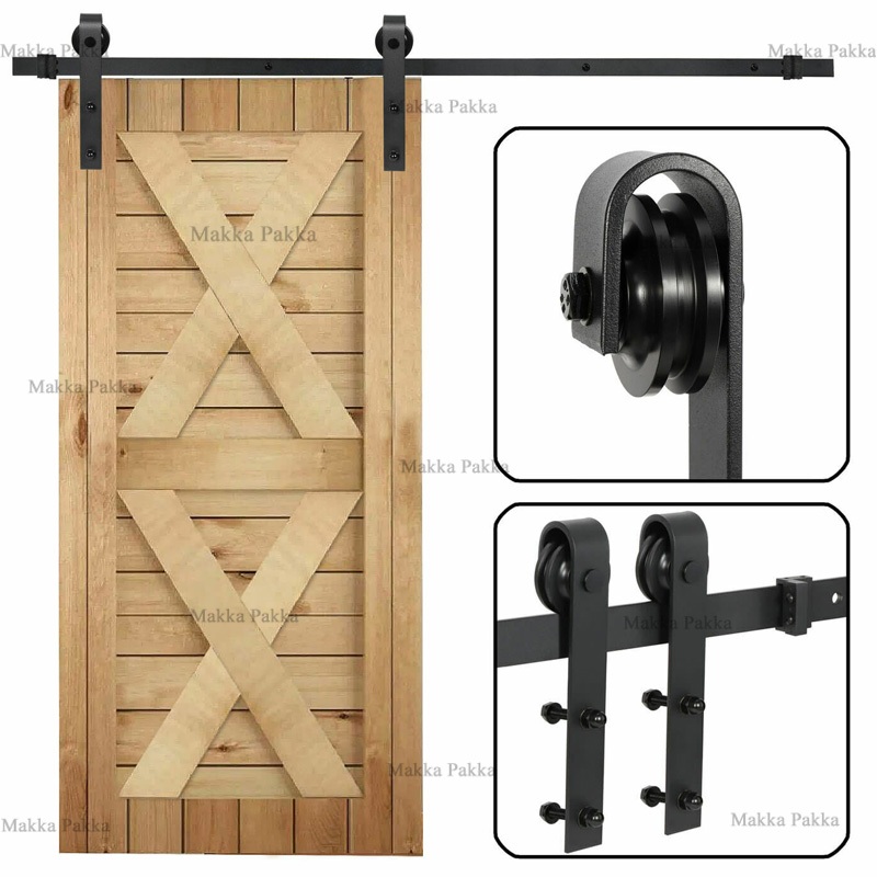 1.5M/1.83M/2M/2.44M baja karbon Kit Perangkat Keras Pintu Geser Pintu Geser Lemari Gantung Gaya Track Rail 6FT/6.6FT/8FT