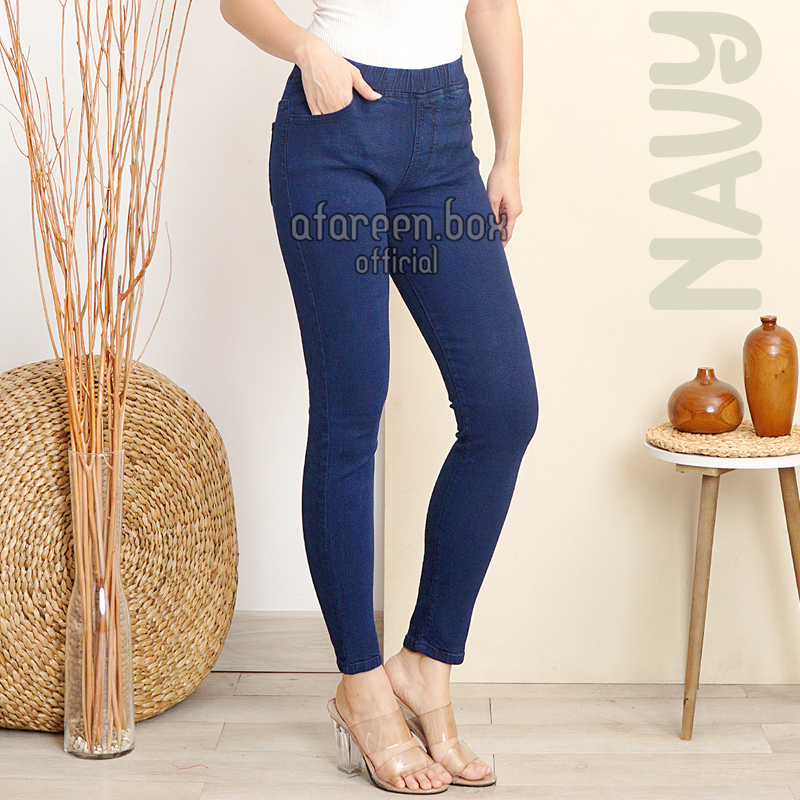 AFAREEN - Jeans Pinggang Karet Jumbo Legging Jeans Pensil Celana Panjang Jeans Wanita 27-43
