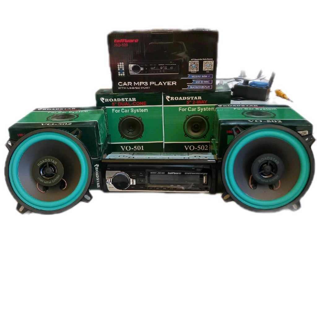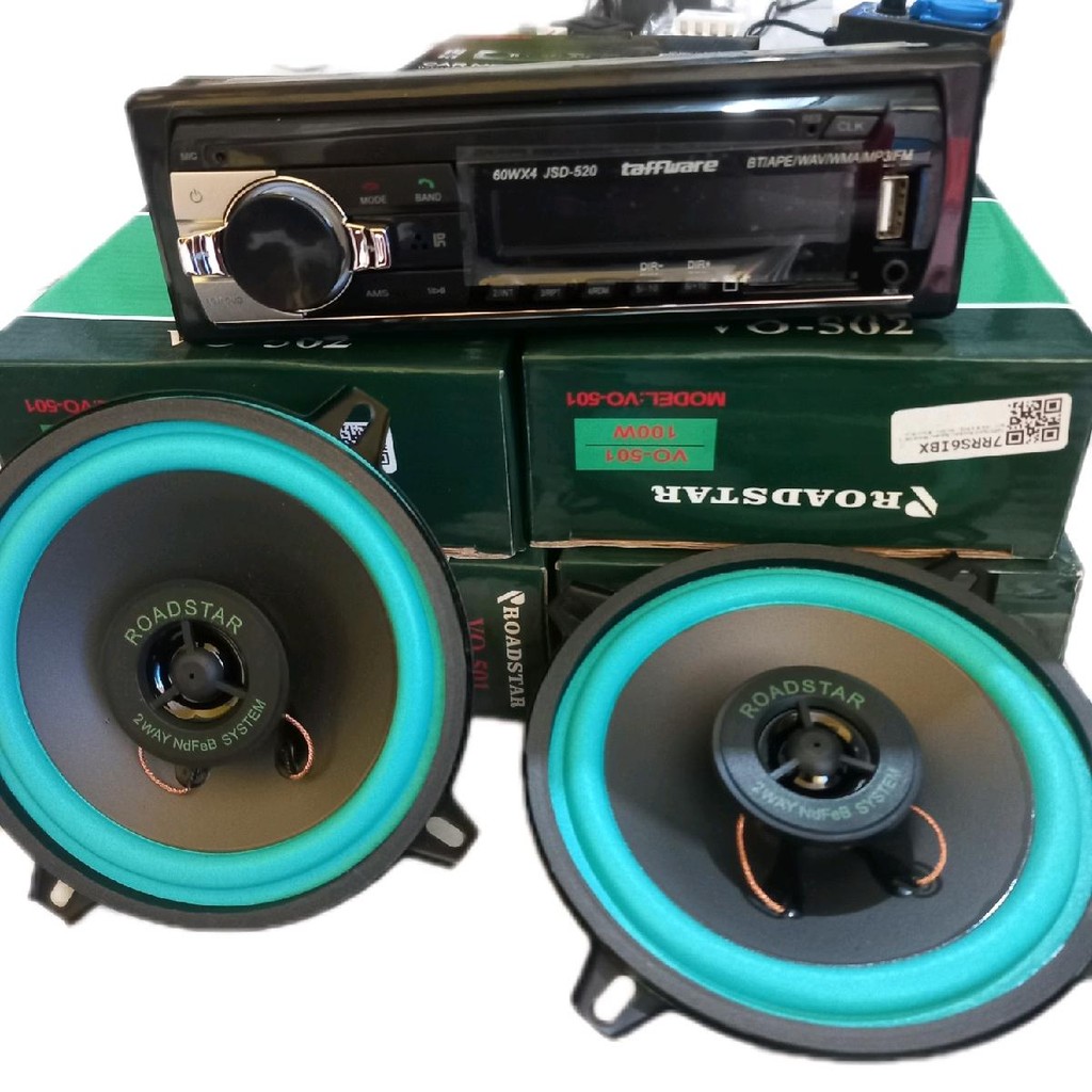 PAKET AUDIO MOBIL TAPE MOBIL JSD 520 PLUS SPEAKER 5 INCH 2 PCS CAR 12 VOLT AUDIO MOBIL