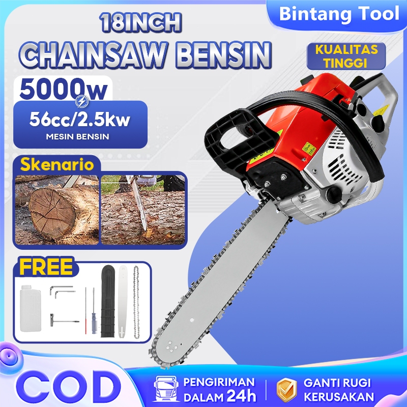 REAIM Mesin Potong Kayu 58CC 20 Inch Chainsaw 2/4 Tak Untuk Gergaji Kayu Gergaji Potong Pohon Kayu