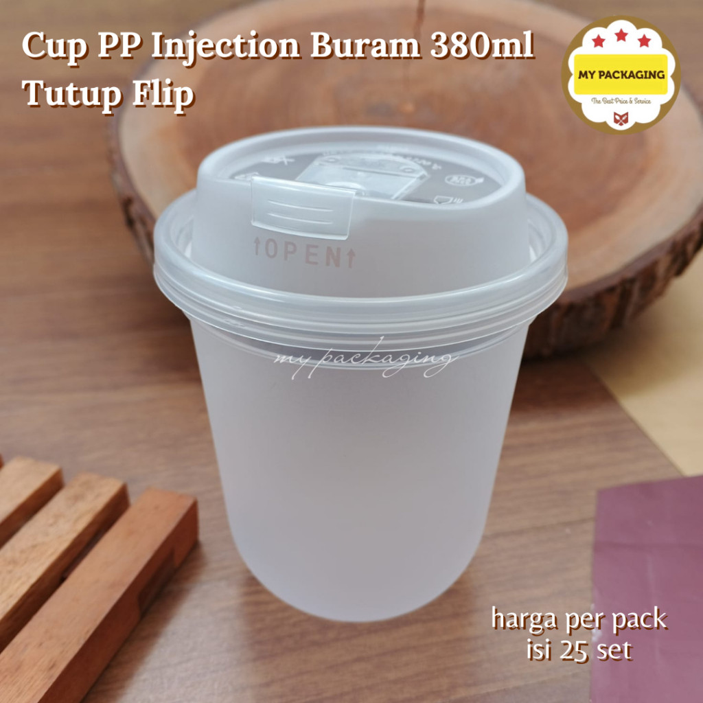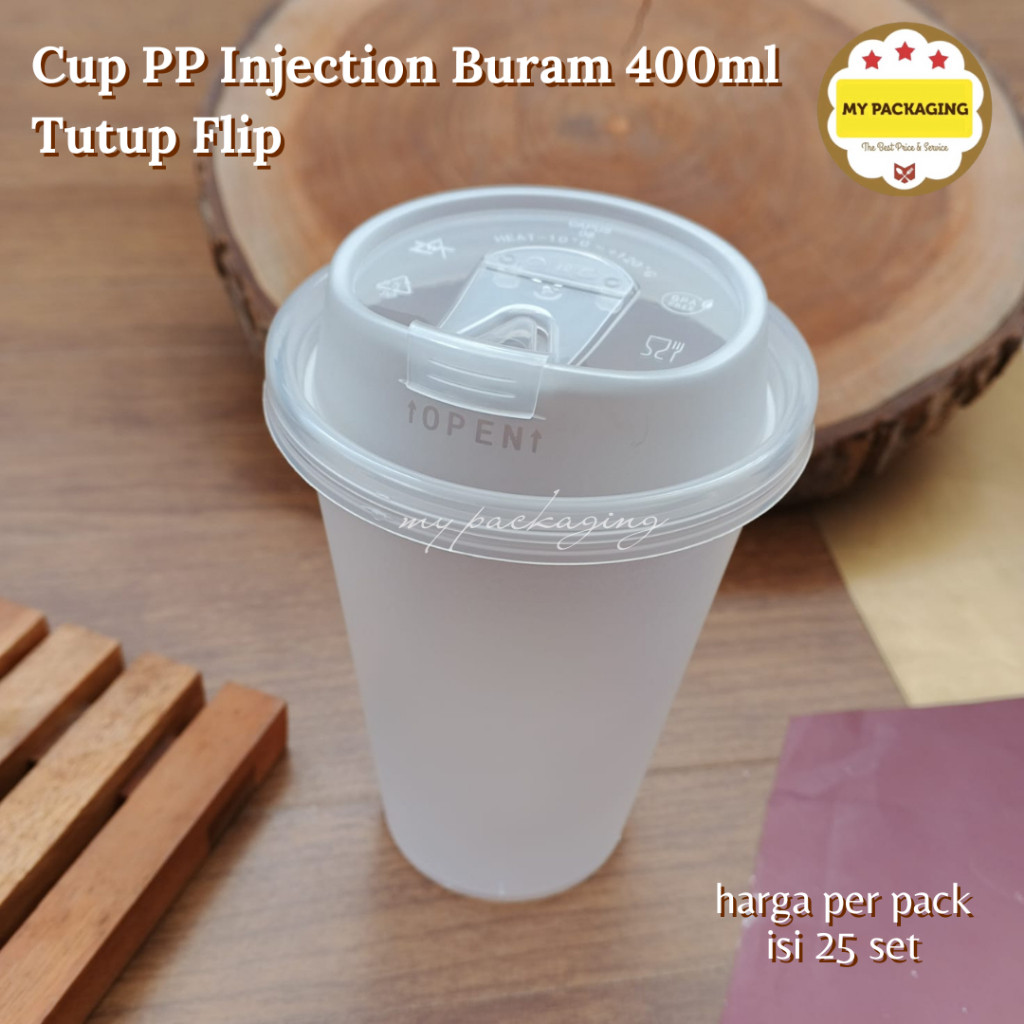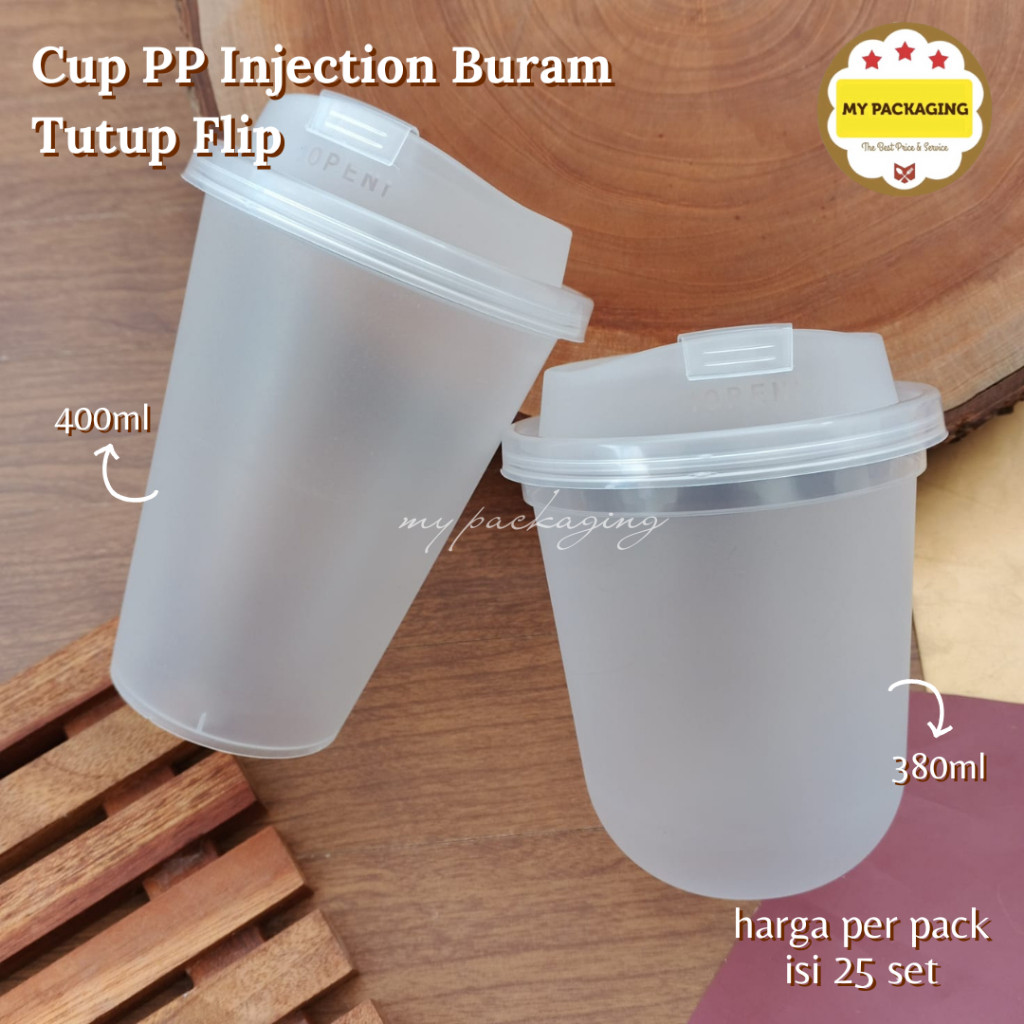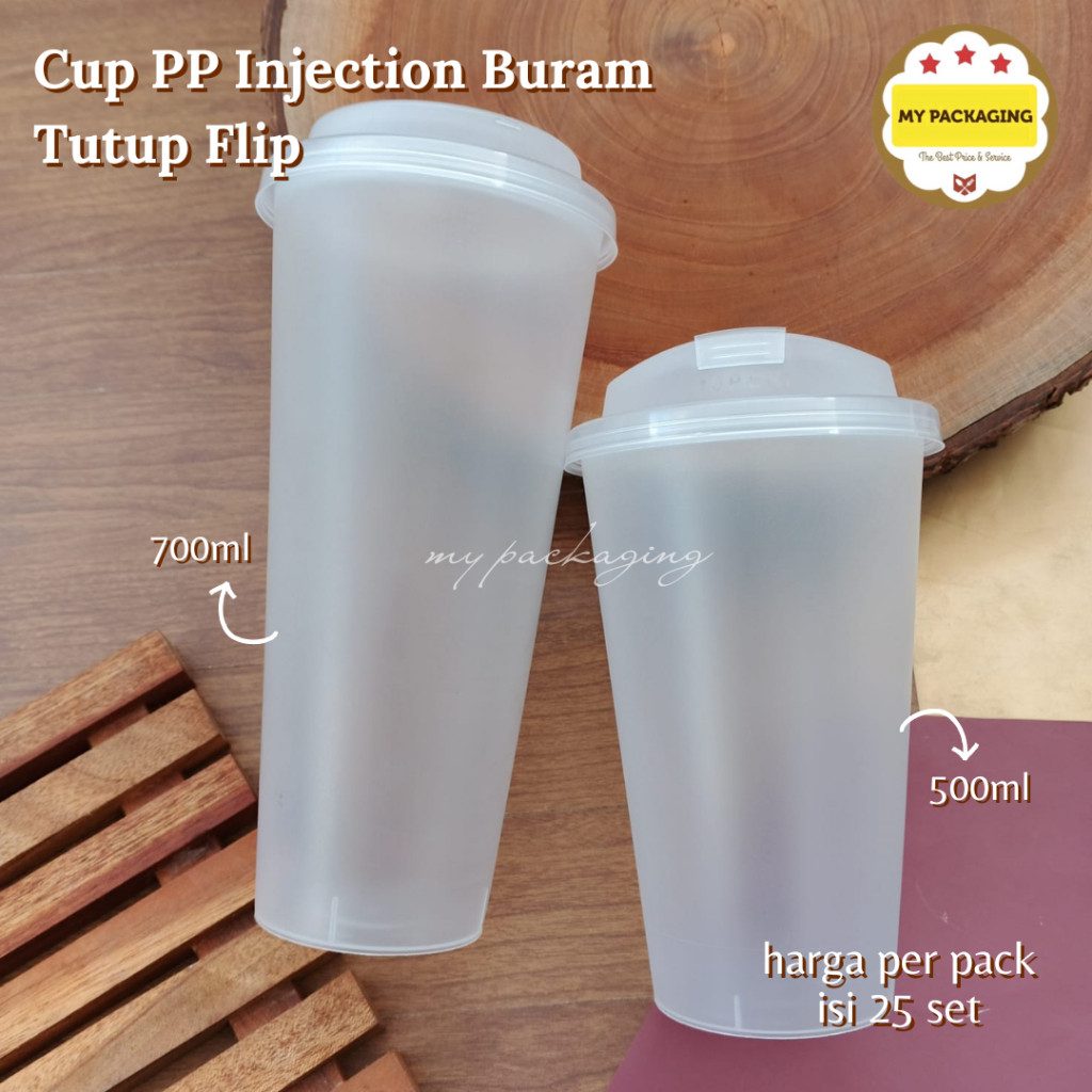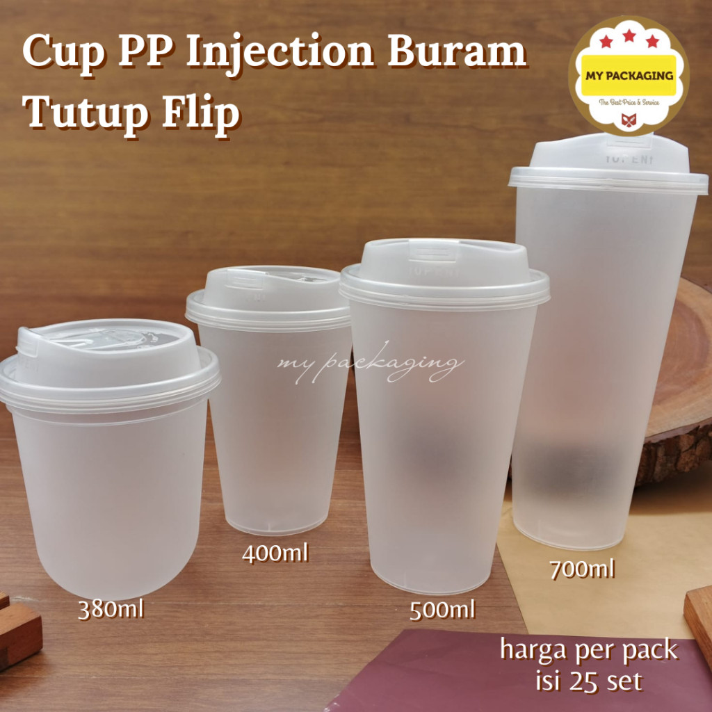 Cup PP Injection Buram Natural + Tutup Flip 25 set (gelas + tutup)