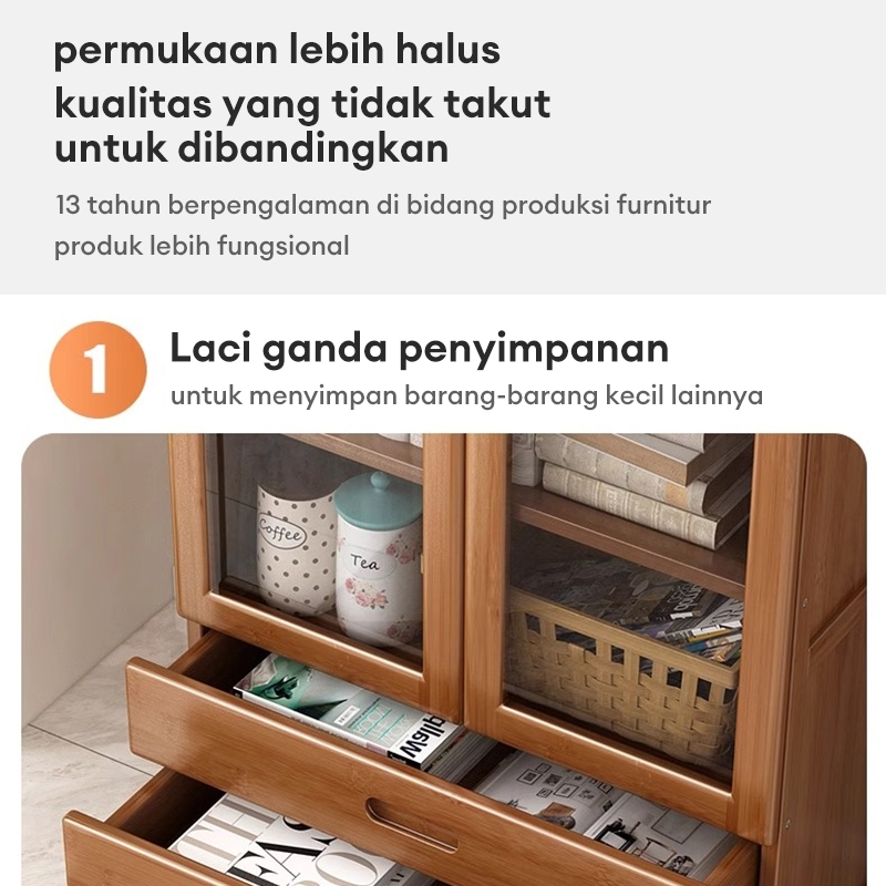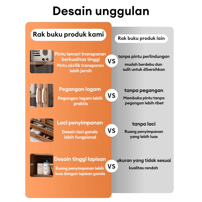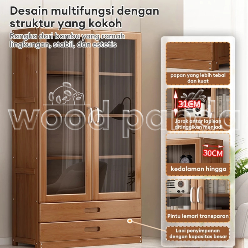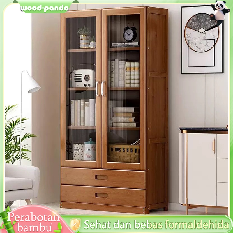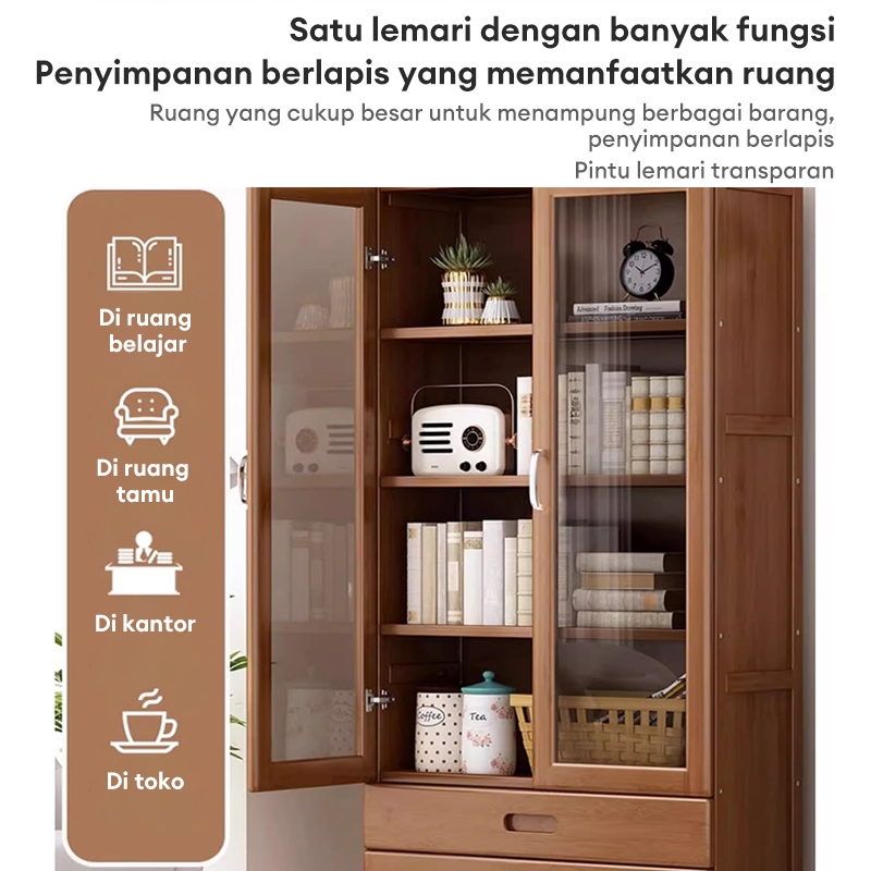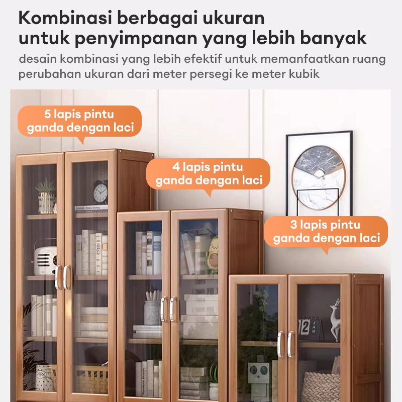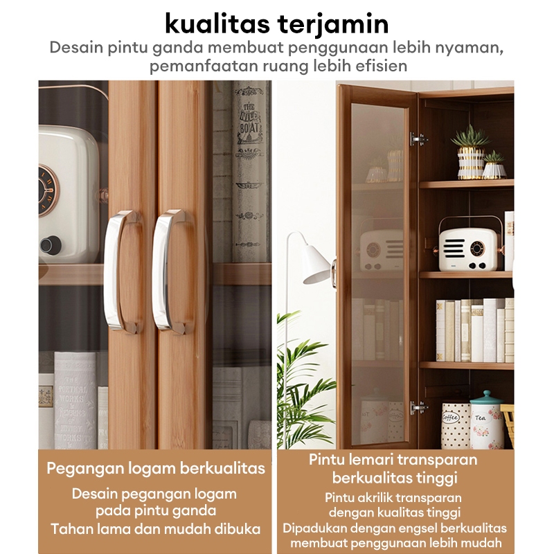 Lemari Buku Lmari Pajangan Transparan Rak Buku Kayu Rak Buku Serbaguna Aesthetic 160cm Gratis Ongkir