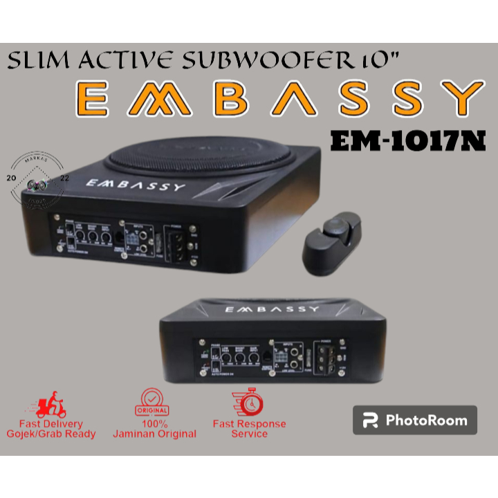 SUBWOOFER AKTIF BASSKOLONG EMBASSY EM-1017N SUBWOOFER KOLONG AKTIF 10" SLIM NEW