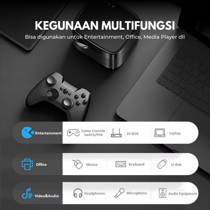 Proyektor C26 Android Wifi Mirroring Ke HP Auto Focus 3200 Lumens 1080P HD