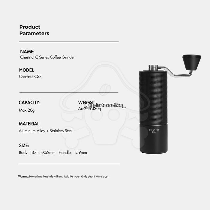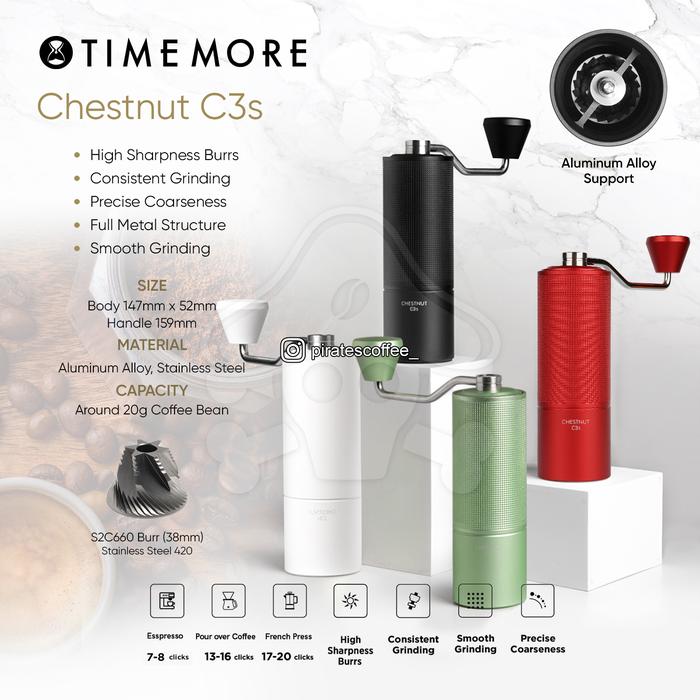 Timemore Hand Grinder New Chesnut C3 Burr S2C Coffee Alat Giling Kopi - C3S Black
