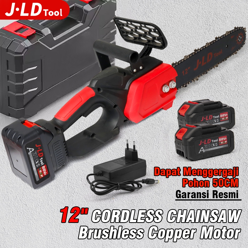 JLD 12Inch Cordless Chainsaw Gergaji Mesin Portable 88Vf Brushless Mesin Pemotong Kayu Chain Saw Original