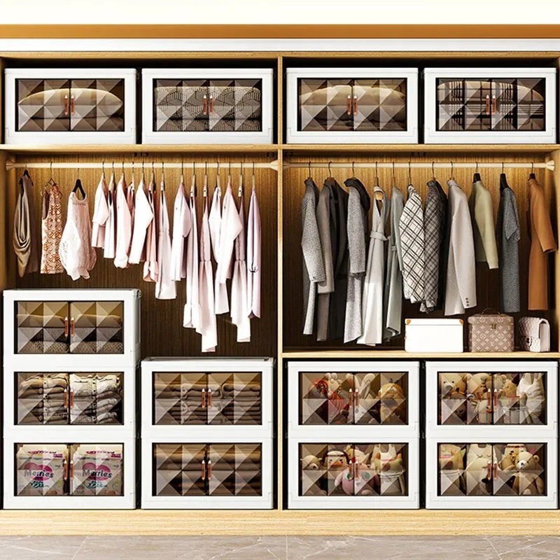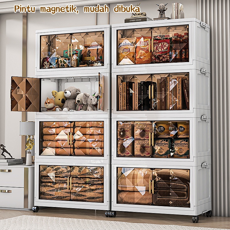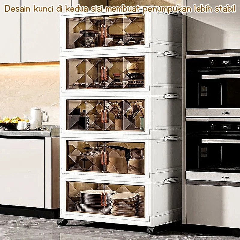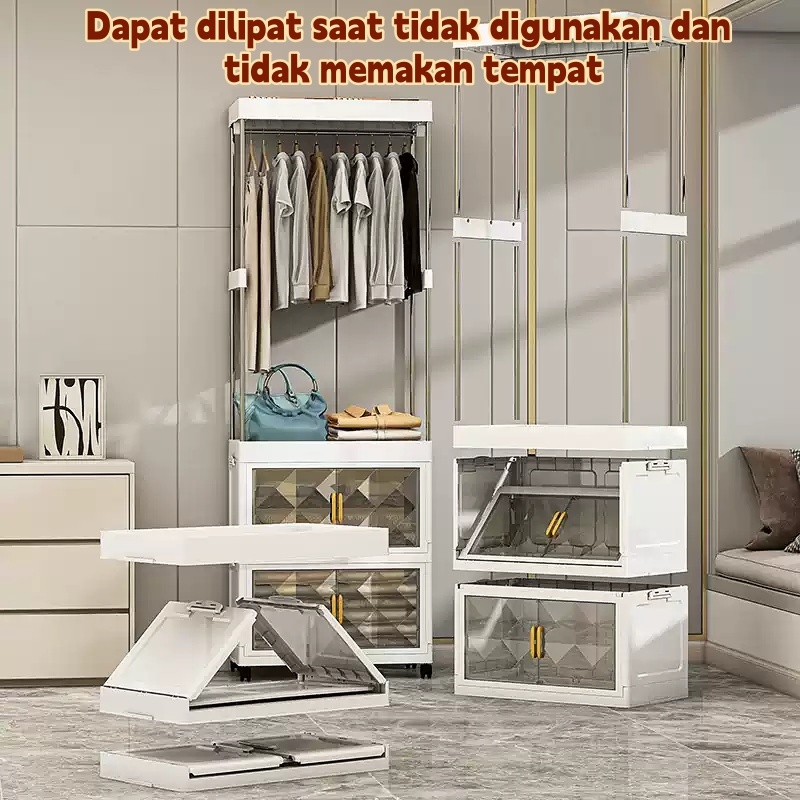 3/4/5 Tingkat Lemari Susun Transparan Lemari Plastik Lipat Penyimpanan Lemari Plastik Baju Anak Serbaa