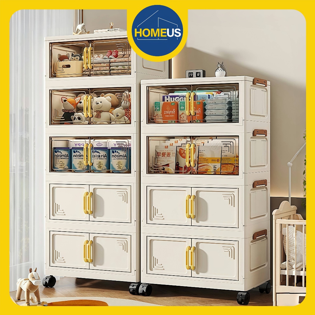【Tidak Diperlukan Instalasi】Homeus Lemari Lipat Plastik Lemari Plastik Jumbo Penyimpanan Serbaa(3/4/5 Tingkat)