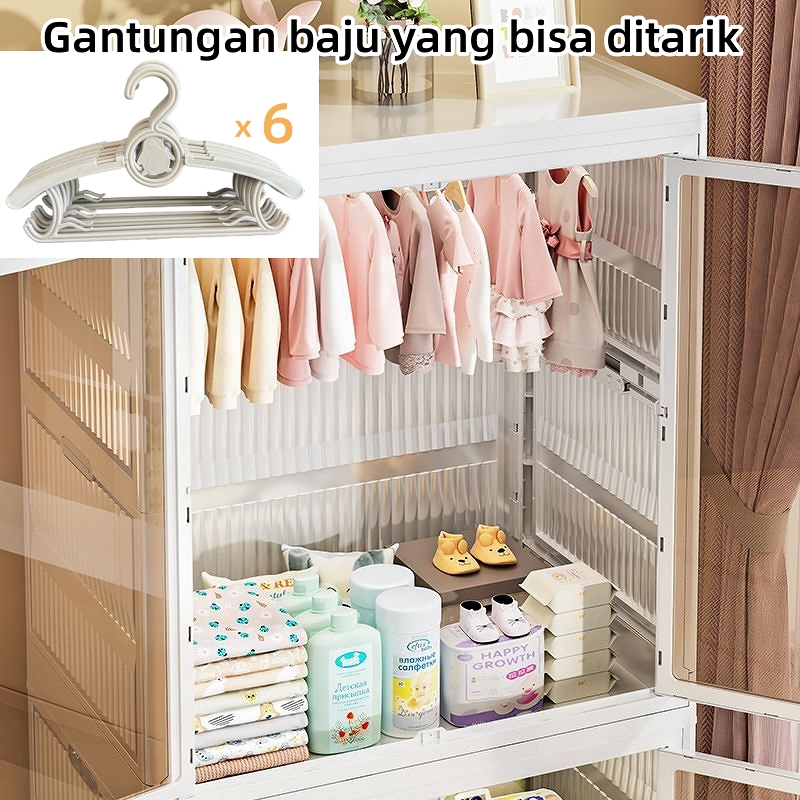 [Stok Siap]Lemari Pakaian Transparan Lemari Plastik Lipat Lemari Penyimpanan Multifungsi Lemari Baju Bayi Gantung Ukuran