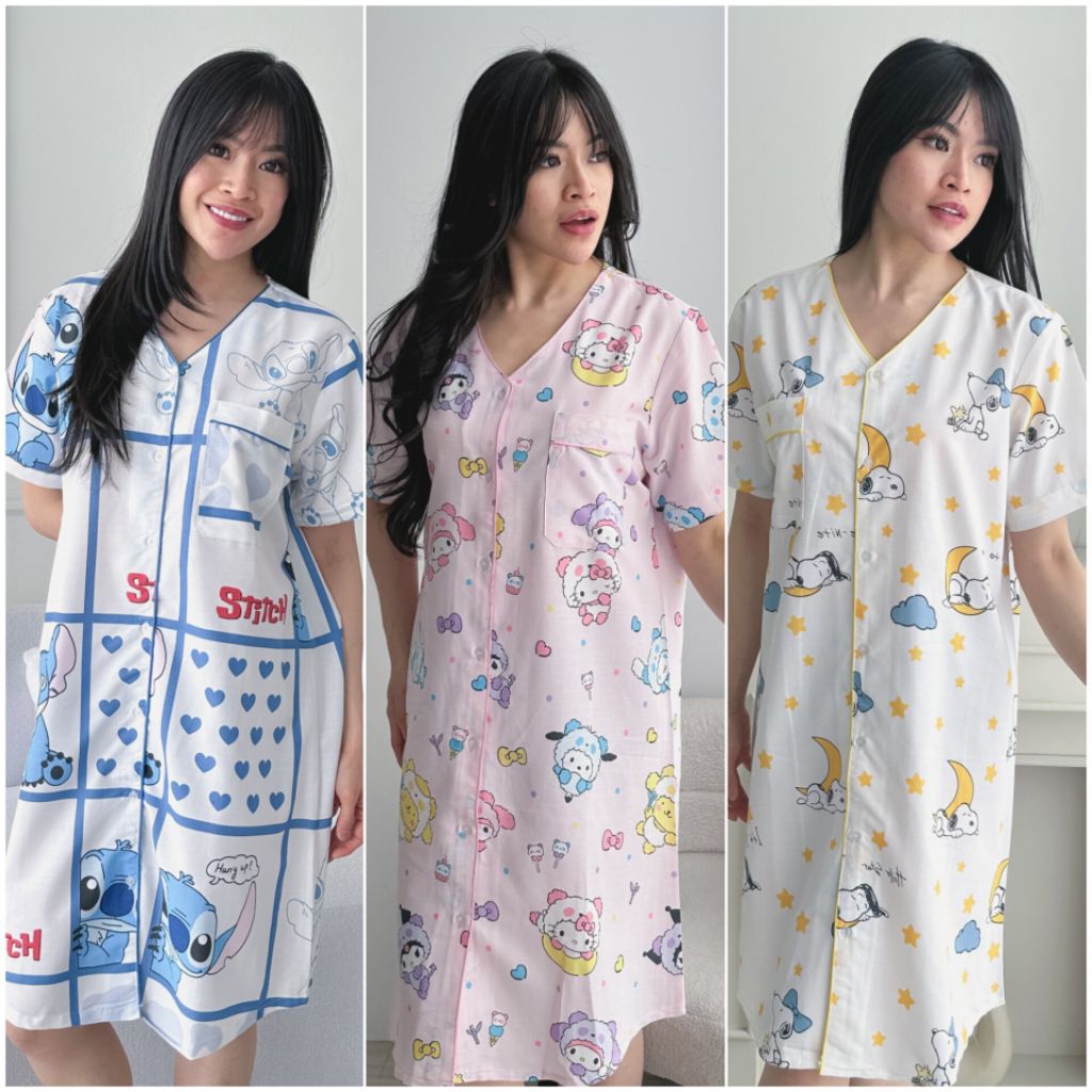 DASTER WANITA / BAJU TIDUR/ PIYAMA BAHAN KATUN HALUS /PIYAMA LD 108 CM/ DRESS TANPA KERAH
