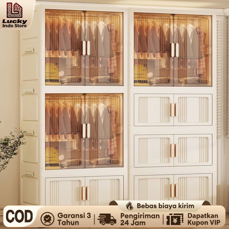 【Ekstra Besar 70/80cm】Lemari Pakaian Lemari Baju Storage Wardrobe Lemari Pakaian Plastik Dengan Roda