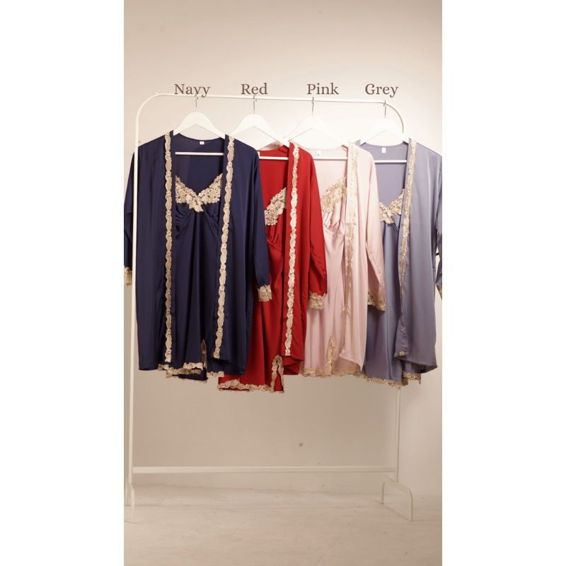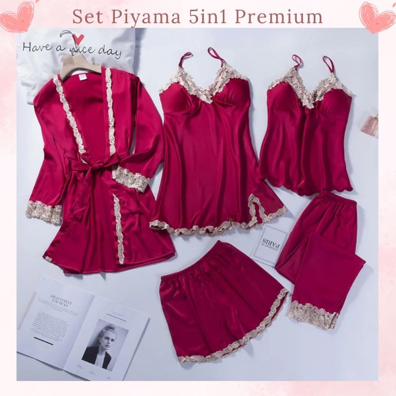 SHANUM - SET PIYAMA WANITA 5IN1 SILK PREMIUM 8082-5 BAJU TIDUR IMPORT ELEGAN