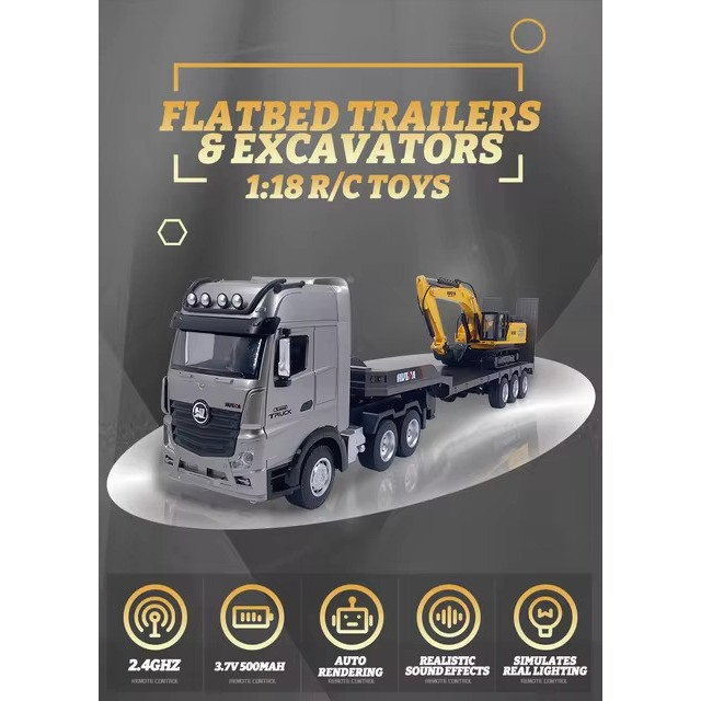HUINA 1522 1501 1502 RC TRAILER TRUCK SIMULATION ENGINEERING FLATBED RC CAR EXCAVATOR TRUCK 9CH 2.4G 1/18 RC TRUK