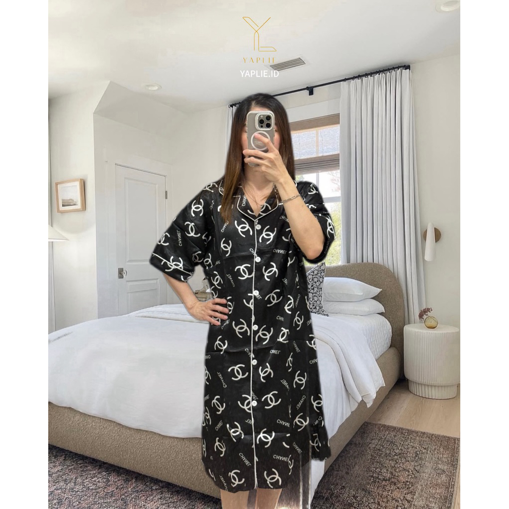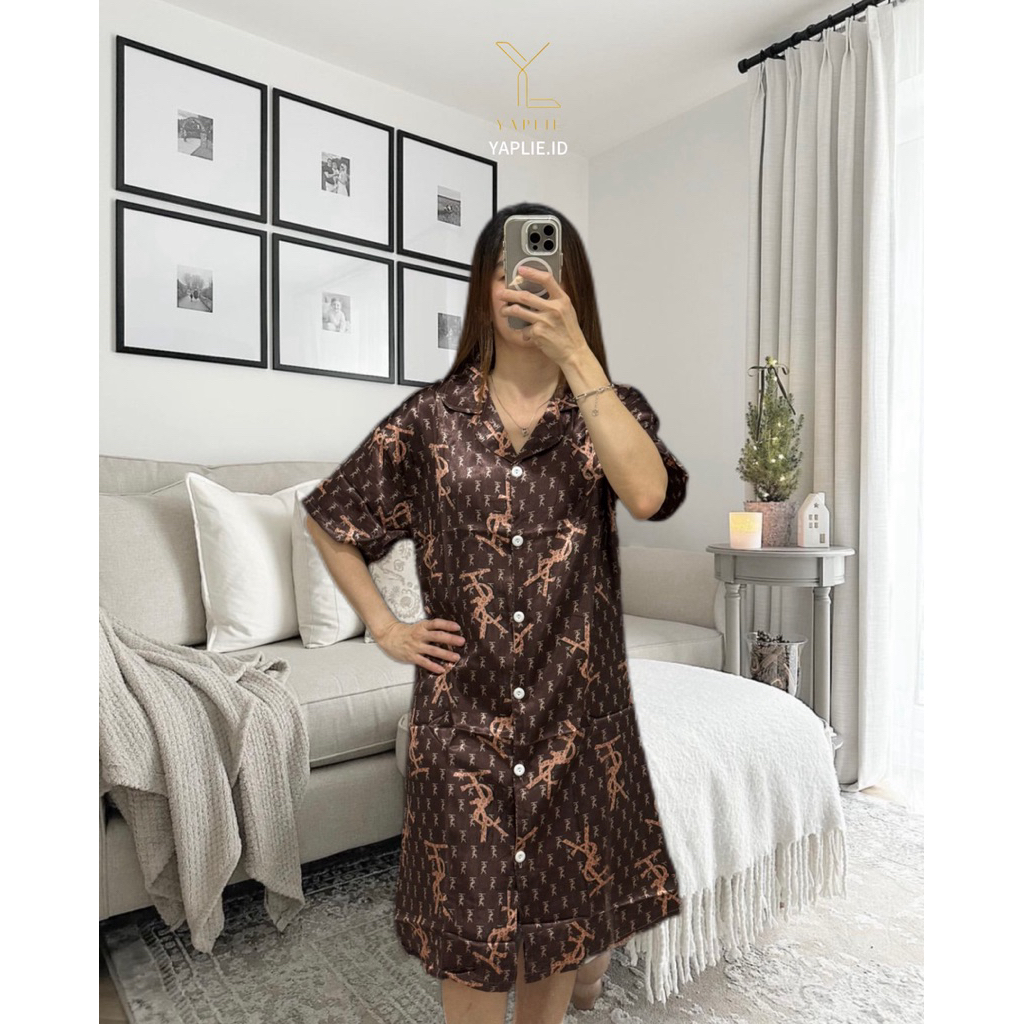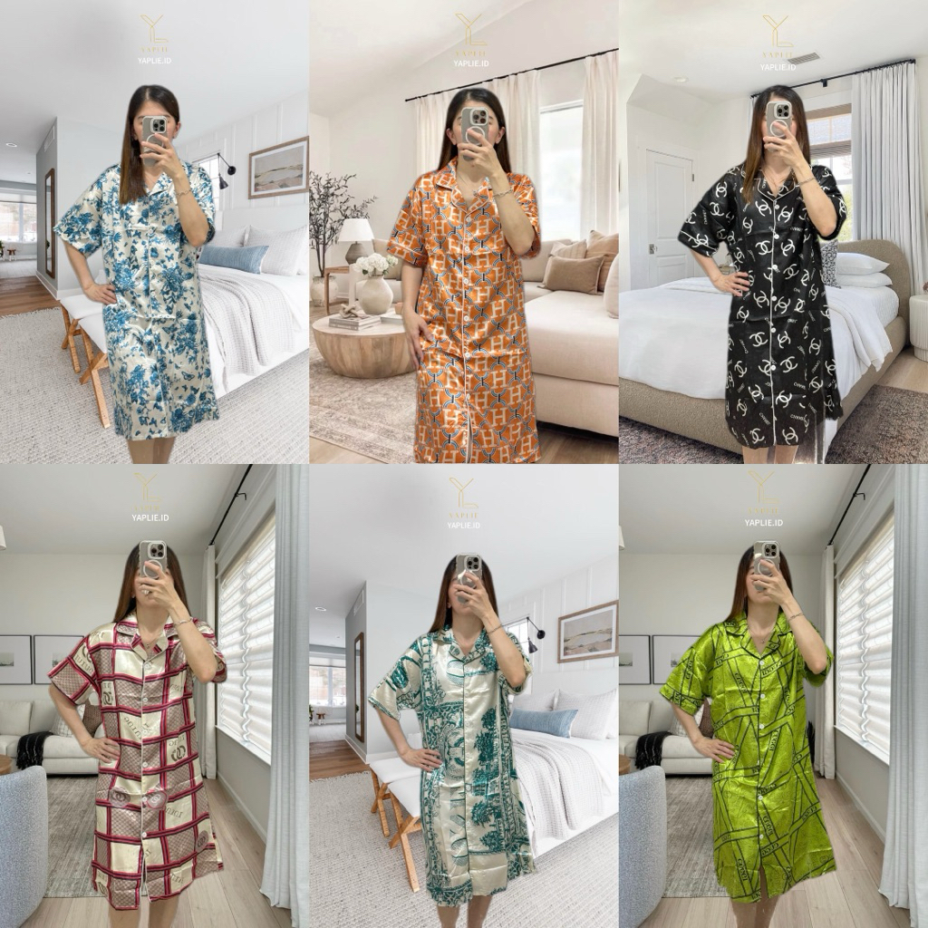 RKLE01 YAPLIE DASTER MODERN PIYAMA BAJU TIDUR DRESS KEMEJA SLEEPWEAR KOREAN SATIN