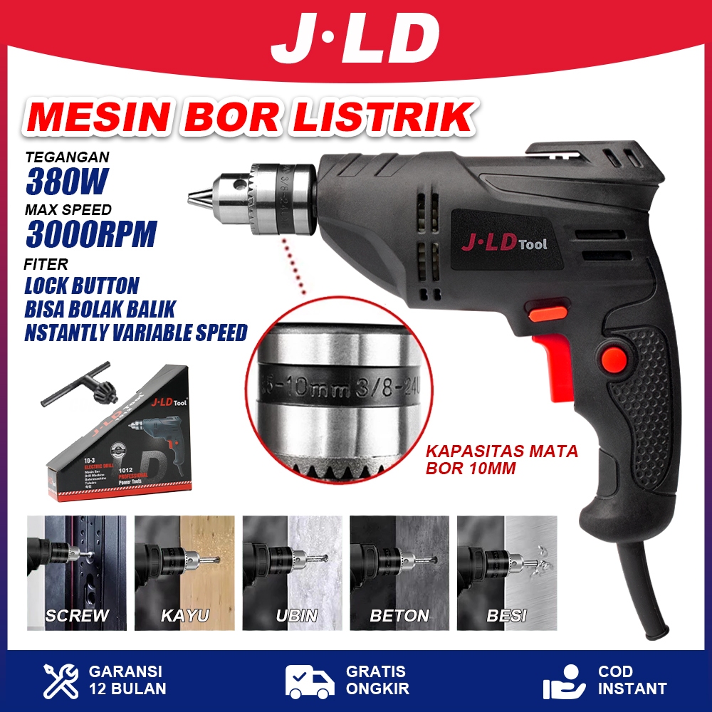【】 JLD Mesin Bor Listrik 10mm Mesin bor murah 380w bor tangan listrik bolak balik Bor Tembok Murah Bor Terbaru Besi