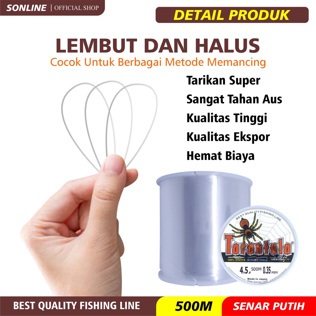 SONLINE Tali Pancing 500m Senar Pancing Tarantula Fishing Line Senar Kuat & Tahan Bahan Nilon Impor