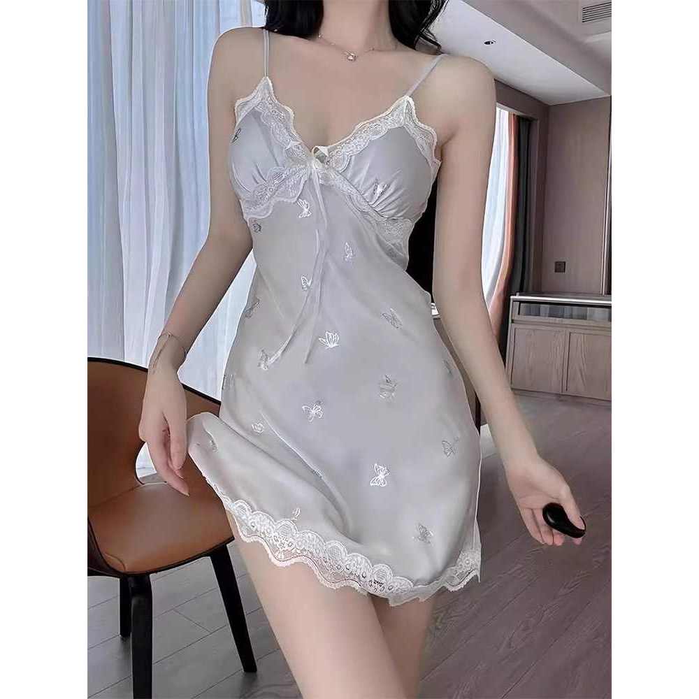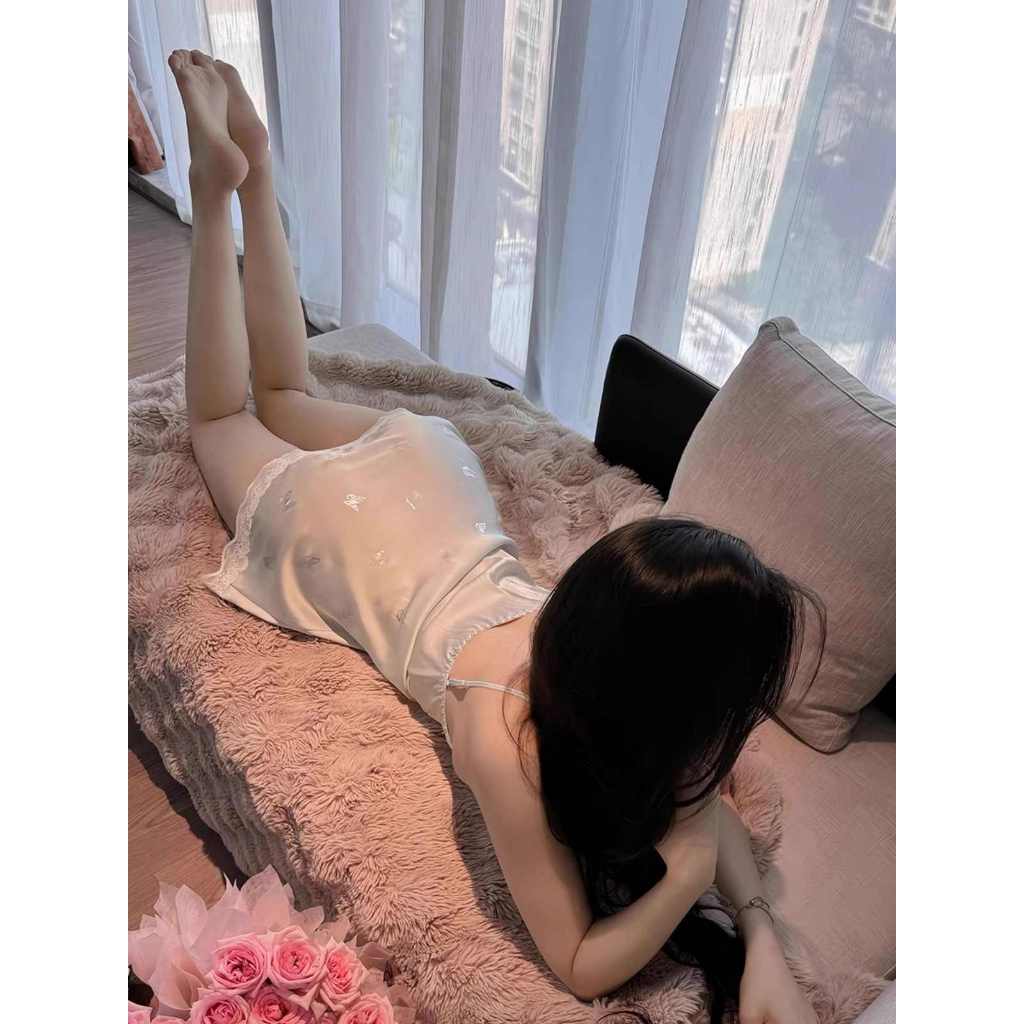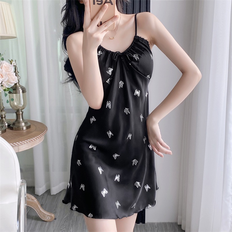 DRESS PENDEK PIYAMA WANITA DS-6537 DRESS MINI DASTER SANTAI KUPU KUPU DRESS TIDUR ICE SILK ADEM MIMON HOME