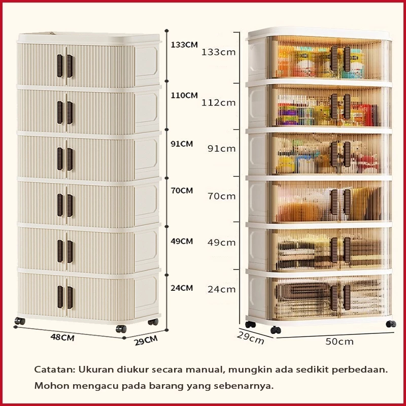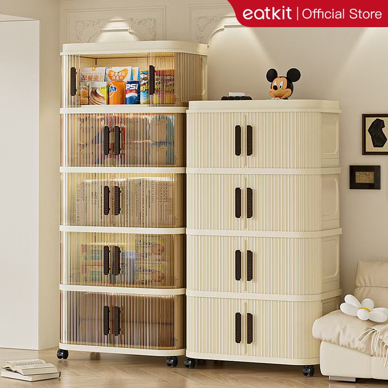 Eatkit Lemari Plastik Lipat 2-5 Susun Sliding Door Penyimpanan Pakaian Serbaa Wardrobe Storage