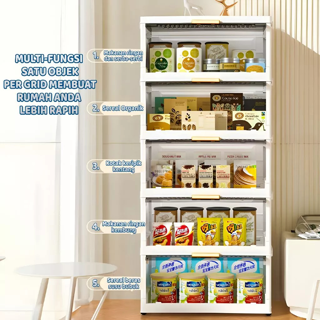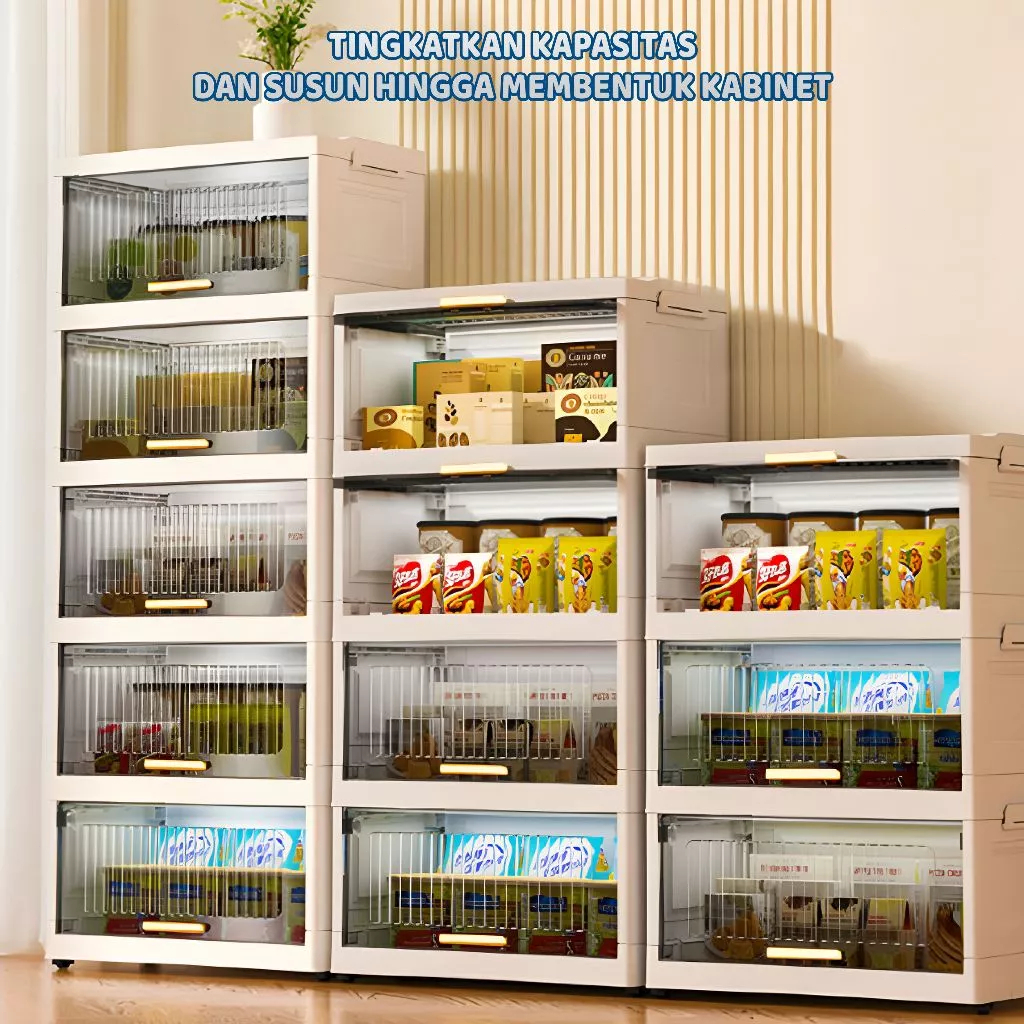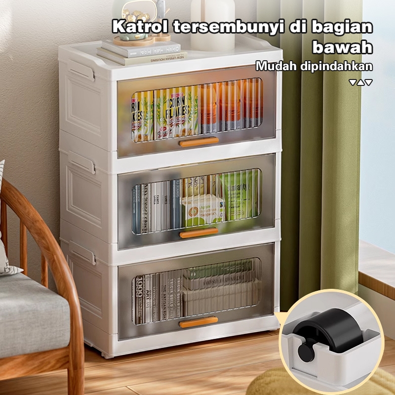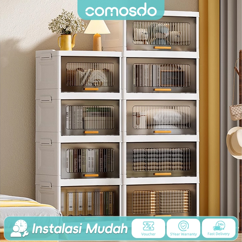 Comosdo【Tidak Perlu Instalasi】 Lemari Plastik Lipat Susun/Rak Kabinet Susun Lipat/Rak Buku Serbaa ada Roda