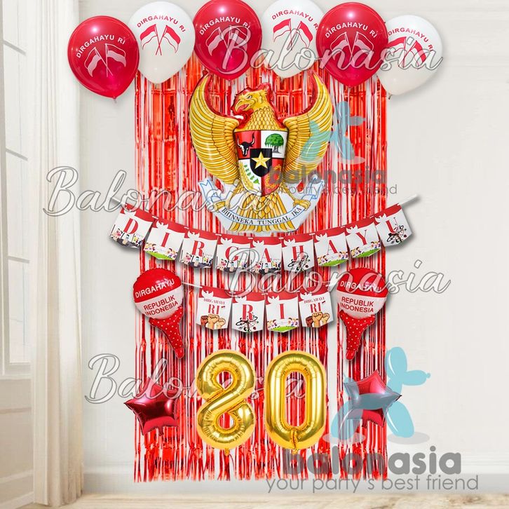 Dekorasi Dirgahayu HUT RI Garuda Tepuk Obor tirai Merah Putih 17 agustus