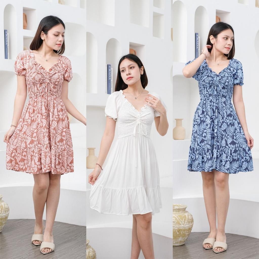 TERA SHORT DRESS - SABRINA PENDEK KOREAN LOOK BEACH OUTFIT RAYON PREMIUM MOTIF BUNGA
