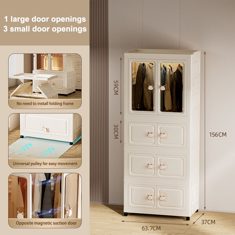 Lemari Plastik Pakaian Dapat Dilipat 3/4/5 Tingkat Laci Susun Storage Cabinet Plastik Rak Susun