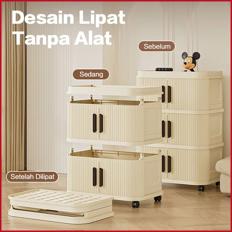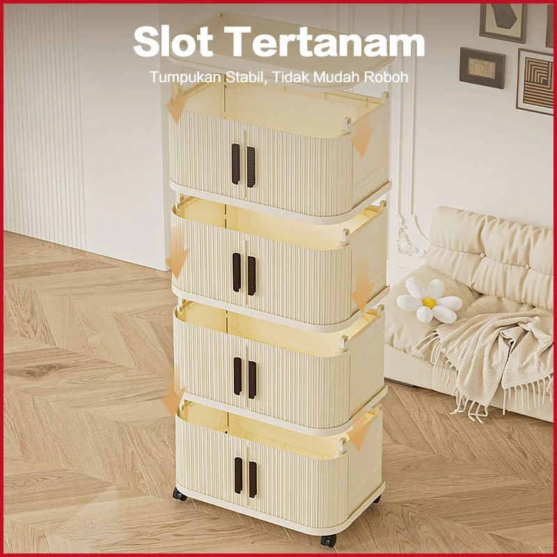 Eatkit Lemari Plastik Lipat 2-5 Susun Sliding Door Penyimpanan Pakaian Serbaa Wardrobe Storage