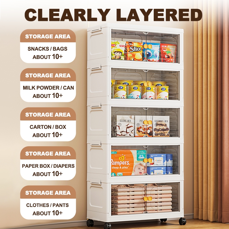 DBODHI 2/3/4/5/6 lapisan Loker Plastik Lemari lemari pakaian Dengan roda universal Dapat ditumpuk