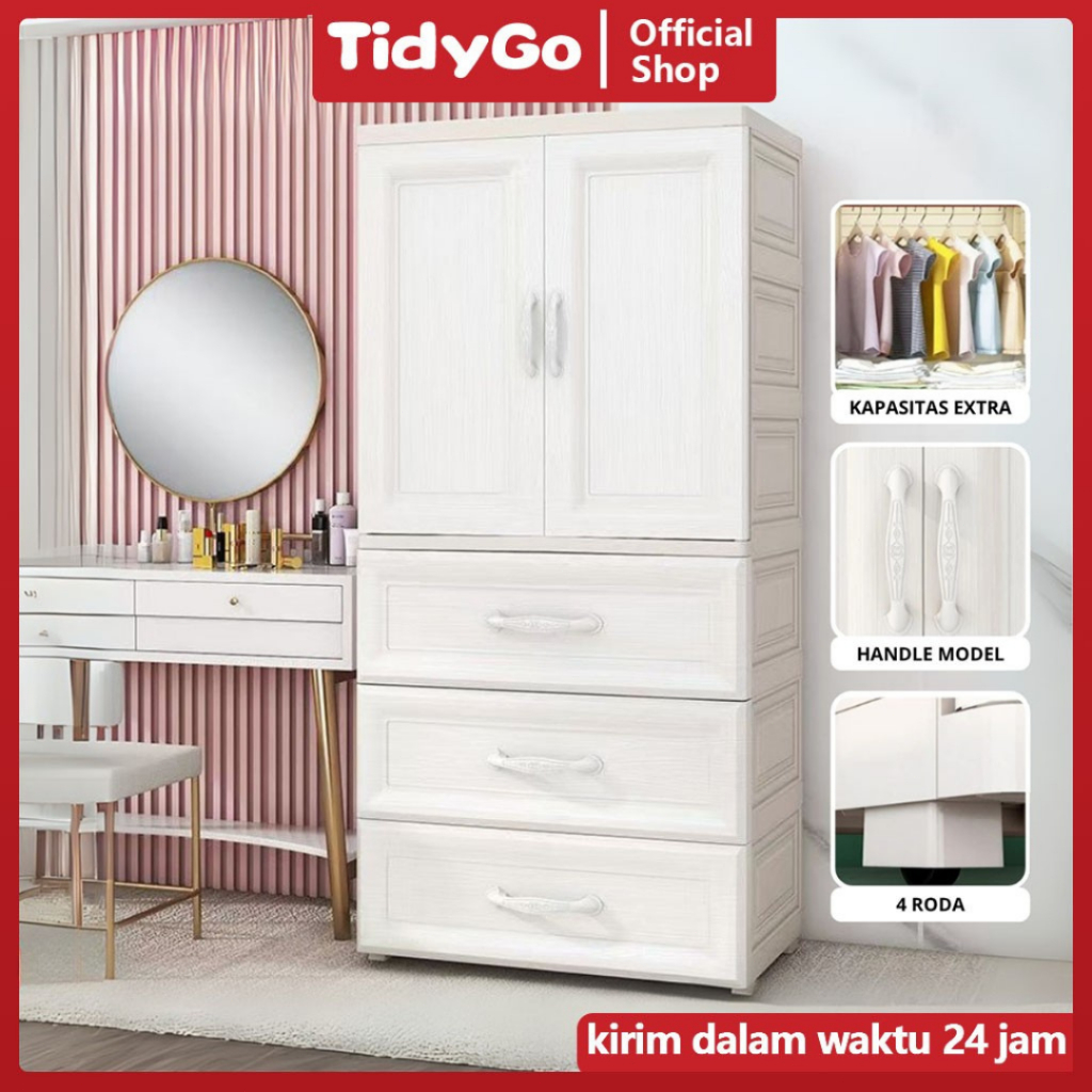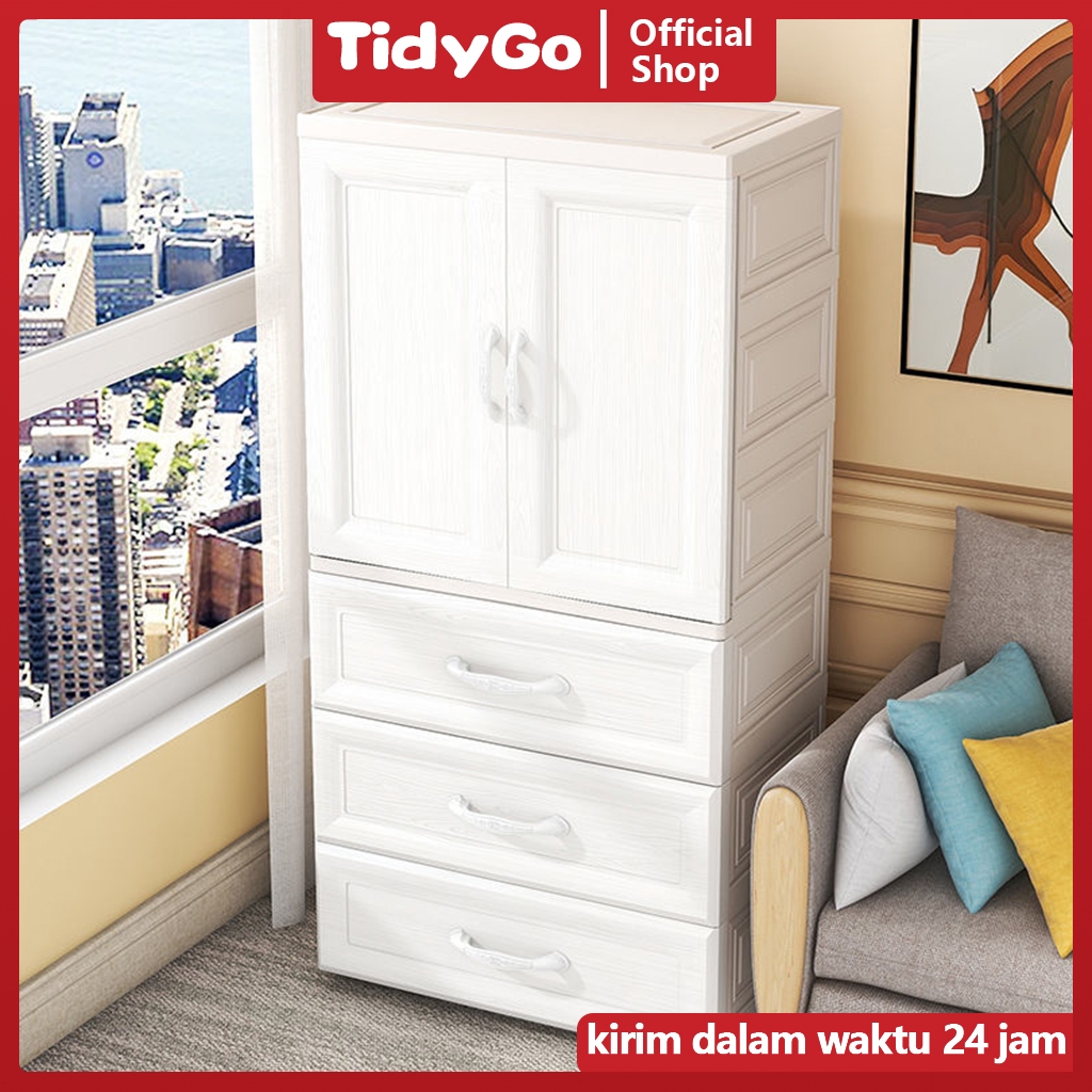 TidyGo Lemari Pakaian Plastik Gantung Laci Susun | Lemari Serbaa | Lemari Plastik Premium