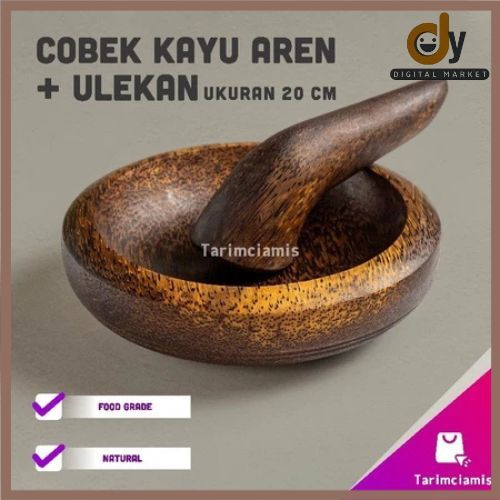 GRATIS ONGKIR Cobek Kayu Aren 20cm + Ulekan Kayu Aren