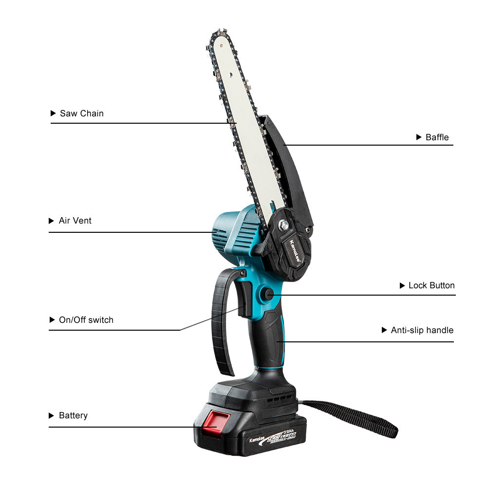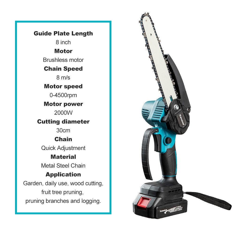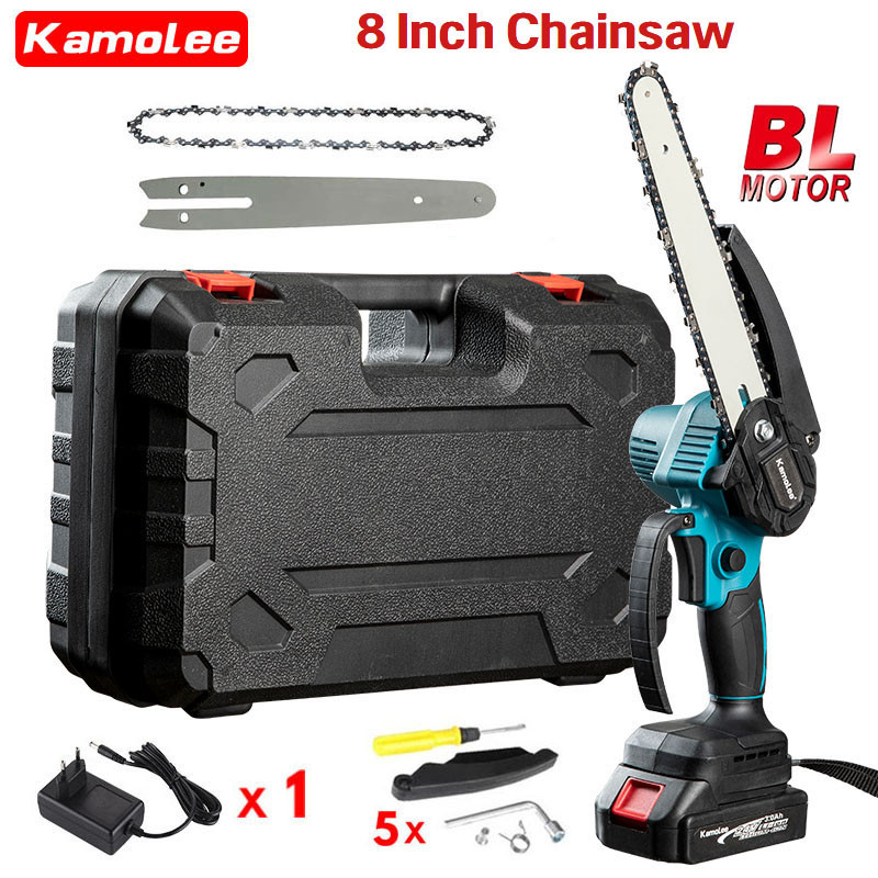 Kamolee 8 Inch Brushless Chainsaw with Battery 1500W Portable Cordless Electric Chain Saw Garden Branch Tree Pruning Pow
