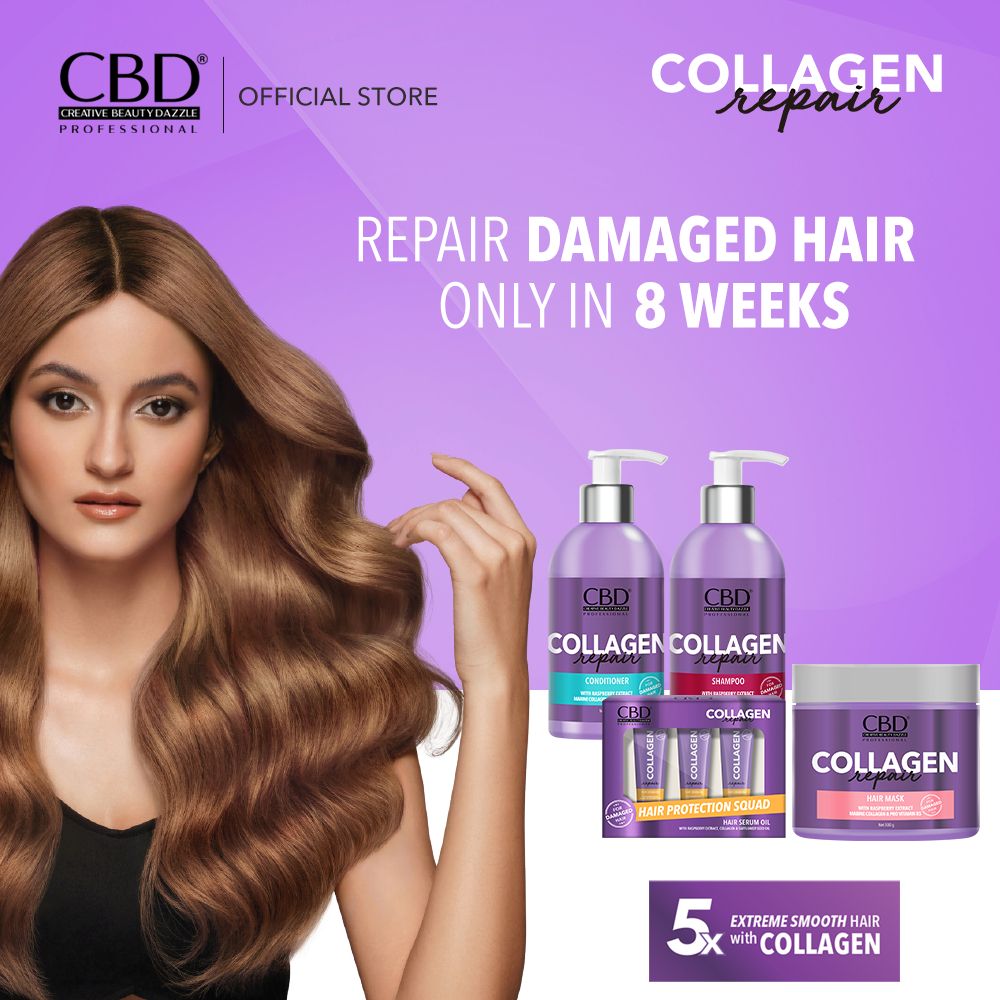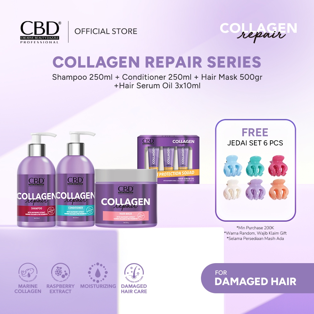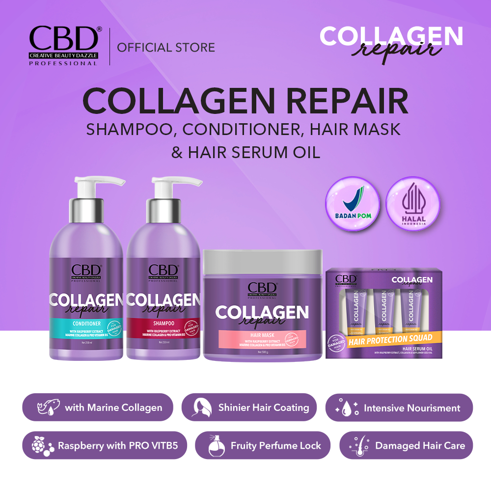 CBD Collagen Bundle Paket Perawatan Rambut Rusak [Shampoo + Conditioner + Hair Mask + Hair Serum Oil (3 PCS)