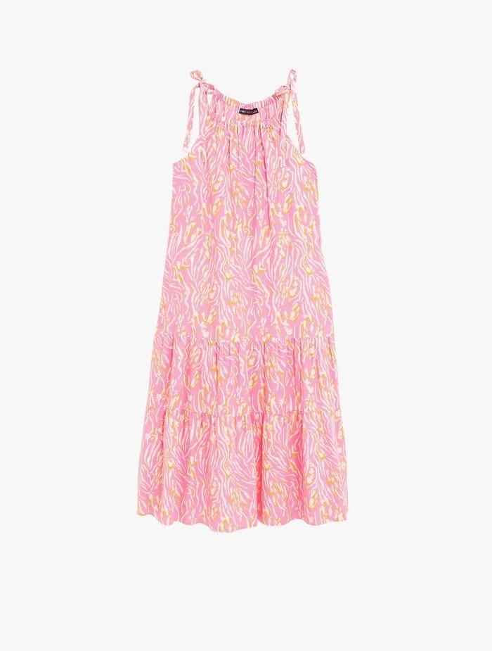 M&S - Dress - Linen Blend Animal Print Maxi Tiered Dress - Pink Mix