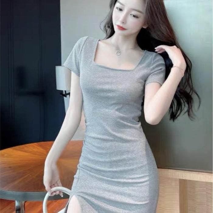 Square Neck Bodycon Short Dress 1327 (S-XL)
