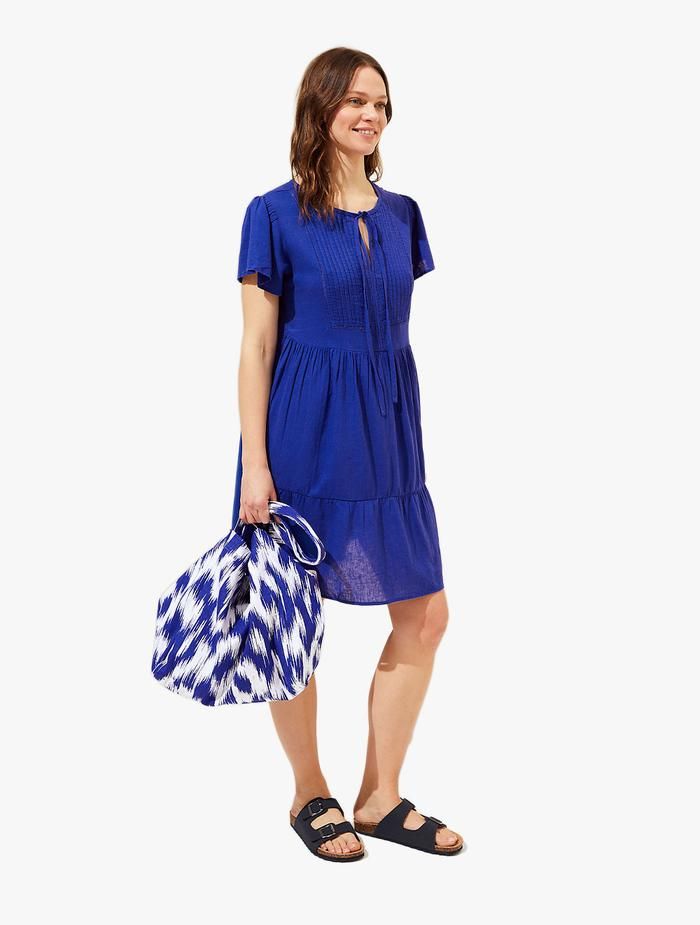 M&S - Dress Wanita - Linen Blend Tie Neck Mini Tiered Dress