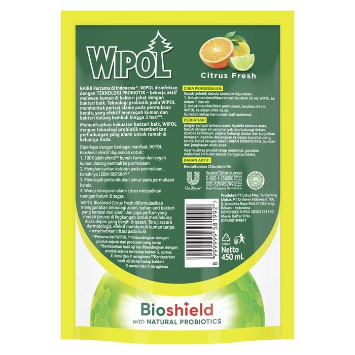Wipol Pembersih Lantai Citrus Fresh 450 mL - Home Care Standar