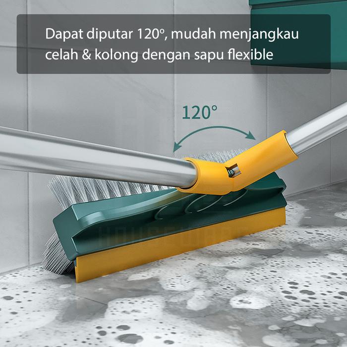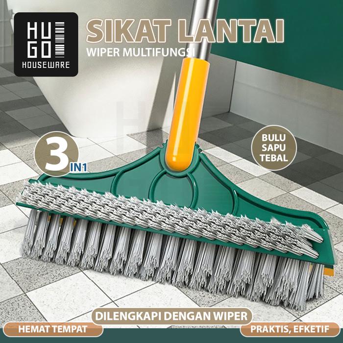 HUGO Sikat Lantai Kamar Mandi Toilet 2 in 1 Sikat Pembersih WC Praktis Multifungsi Serokan Air Gagang Panjang