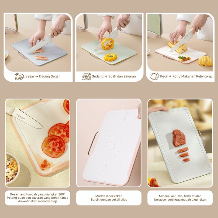TERLAKU FUNNYCOOK Talenan Plastik 3 Set Premium Serbaguna / Talenan Pemotong Buah Sayur Dengan Pegangan abidl