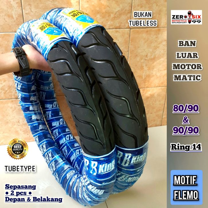 SEPASANG 1 SET BAN LUAR MOTOR MATIC METIK 80/90 & 90/90 RING 14 MOTIF FLEMO TUBE TYPE / NON TUBLES & TUBLES TUBELE