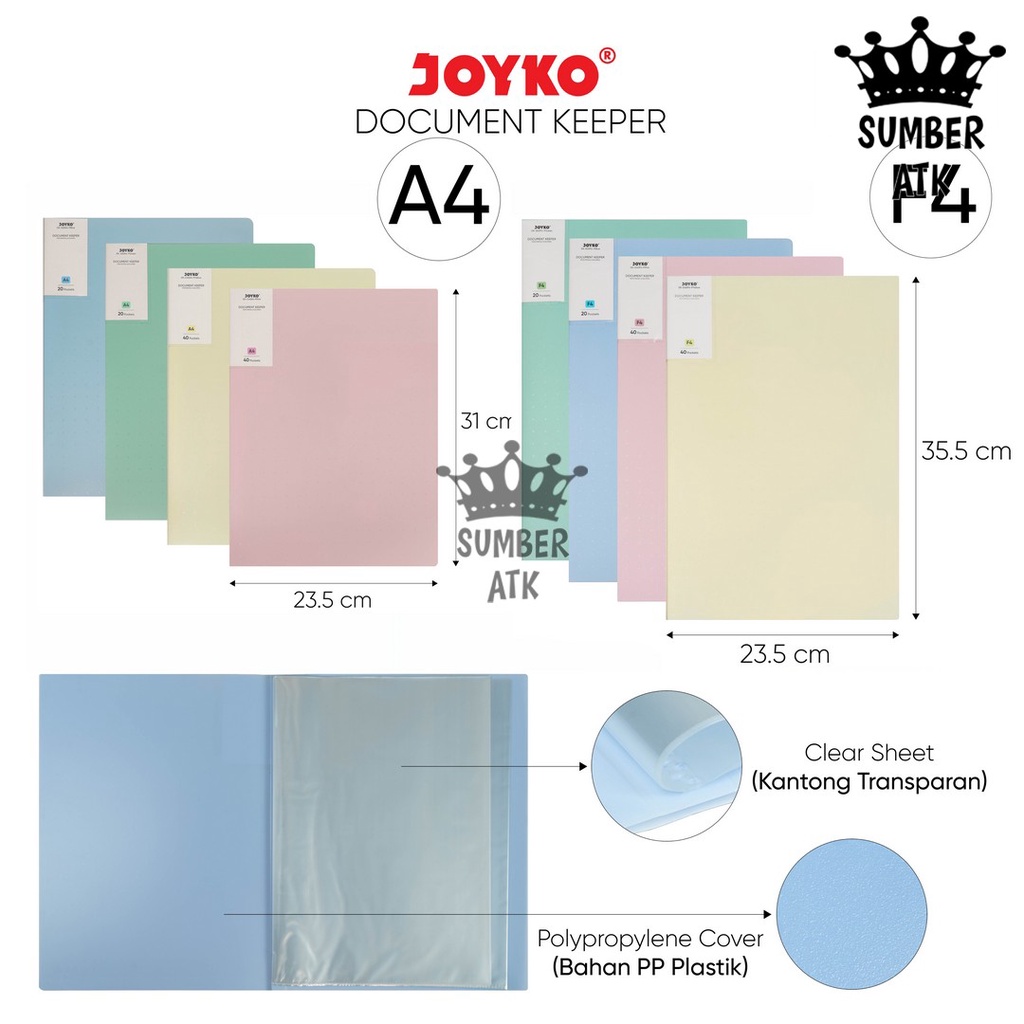 Document Keeper Clear Holder A4 F4 20 , 40 , 60 Lembar Map File Dokumen Folder Joyko Pastel
