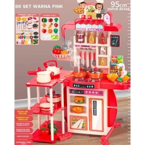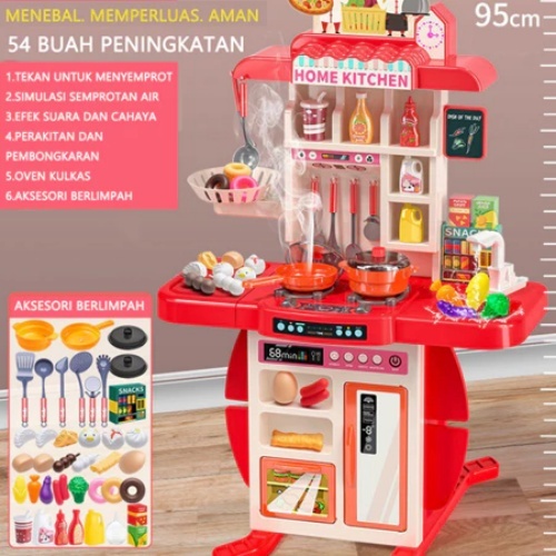 [Mall] YUNLEO [86/54PCS] 95CM MAINAN MASAK MASAKAN KITCHEN SET DENGAN WASTAFEL MAINAN ANAK SPRAYING MIST PEREMPUAN SET ANAK MAS