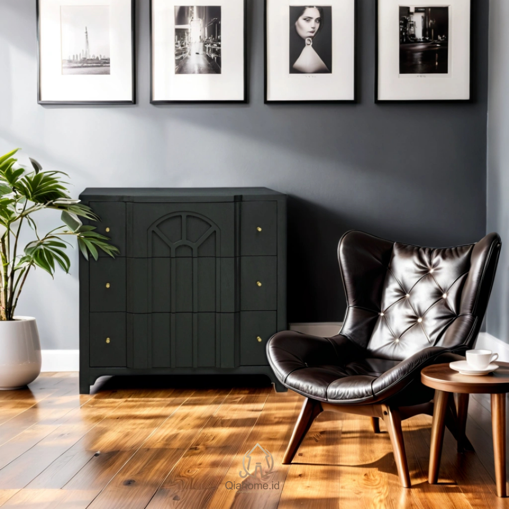Qiahome.id Luxe Black Cabinet Lemari Baju Lemari Kayu Aesthetic Lemari Expor Lemari Kayu Anti Rayap