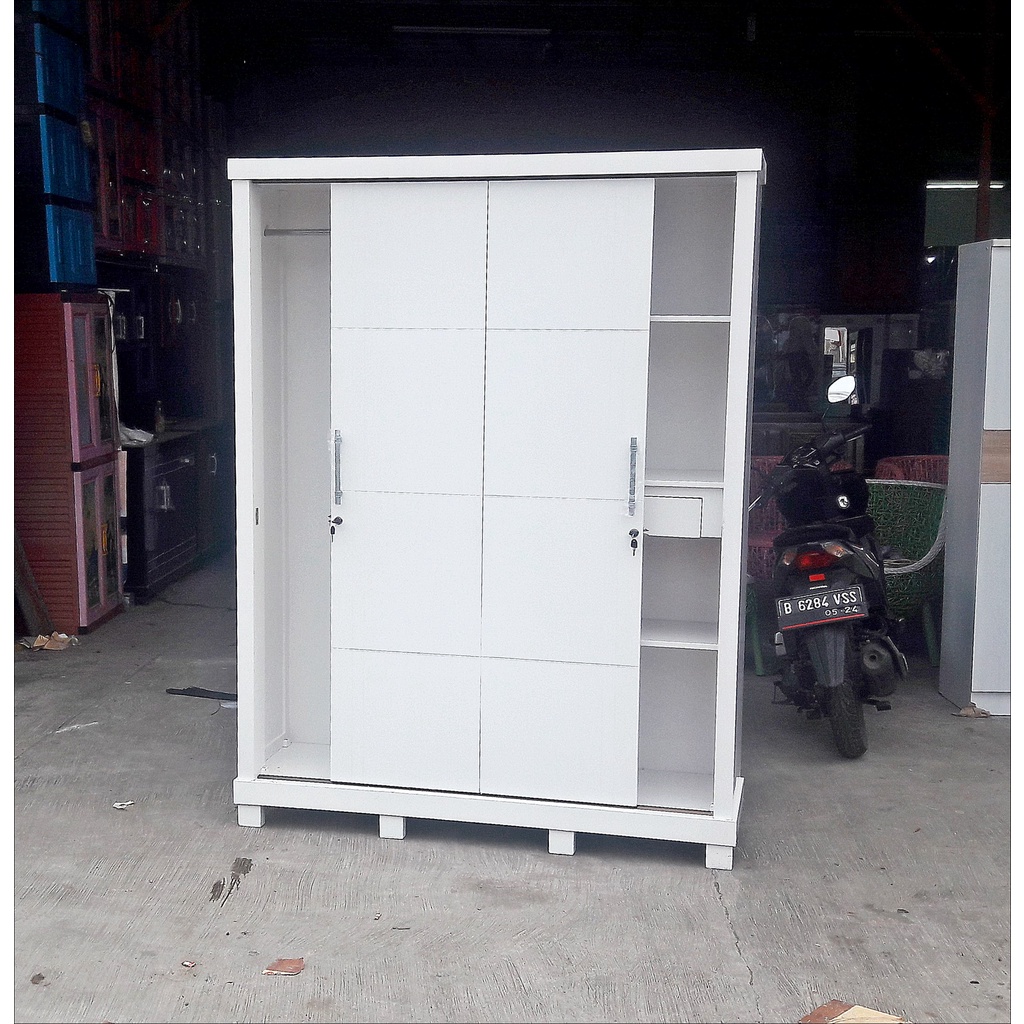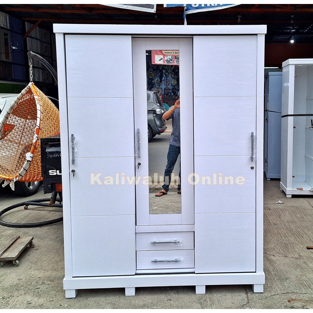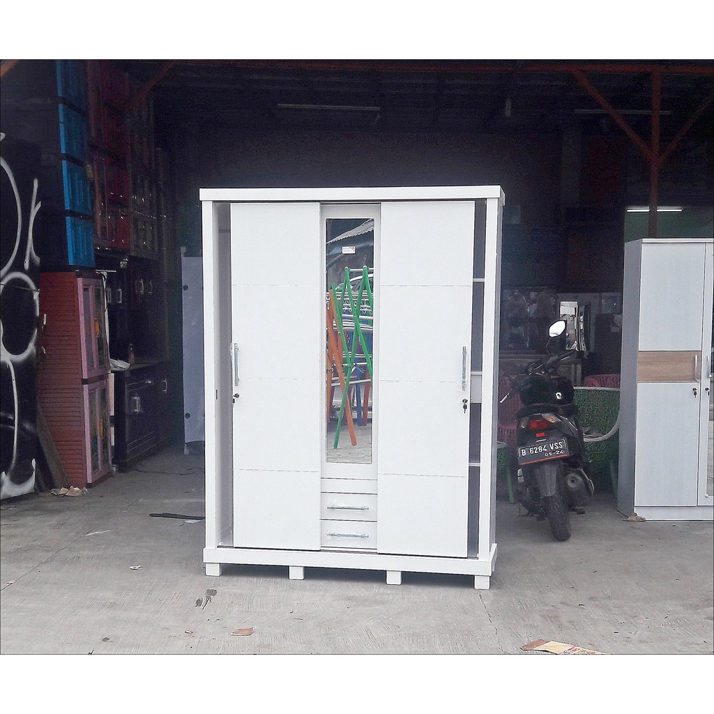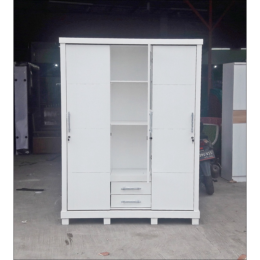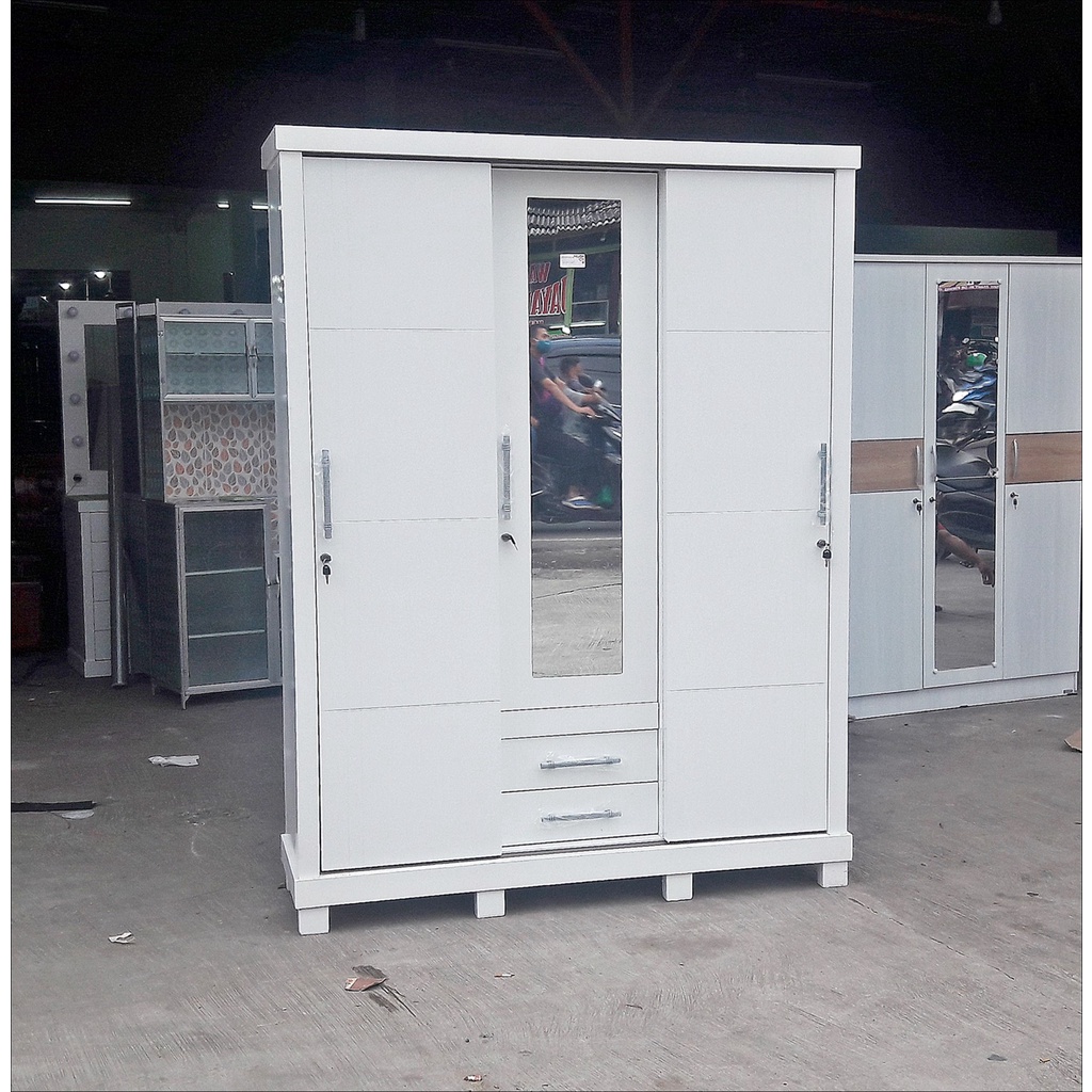 Lemari KAYU Pintu 3 sliding Warna Putih Evalia